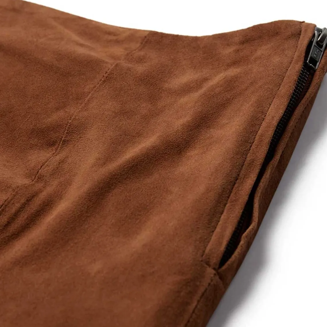 Naomi nederdelen i ruskind er en elegant og tidløs lang nederdel fremstillet i blød og eksklusiv ruskindskvalitet. Nederdelen har et simpelt og stilrent design, der gør den anvendelig sæson efter sæson. Med sin skjulte lynlås i taljen opnås et rent og sofistikeret udtryk, der let kan styles til både hverdag og festlige lejligheder. Naomi nederdelen er et must-have til garderoben, der kombinerer klassisk design med luksuriøst materiale. – Regular fitting