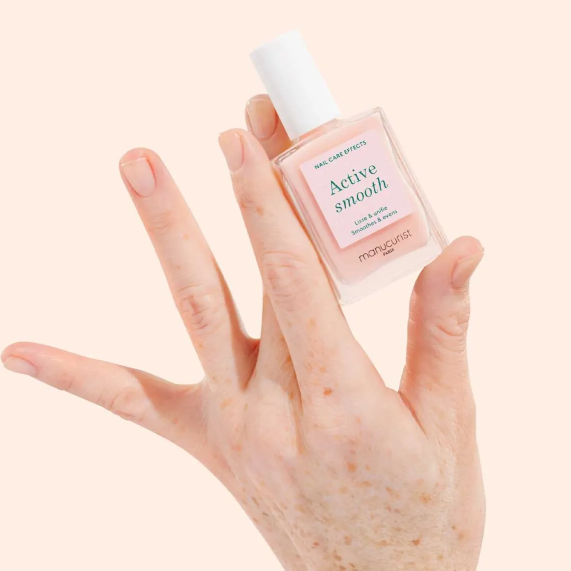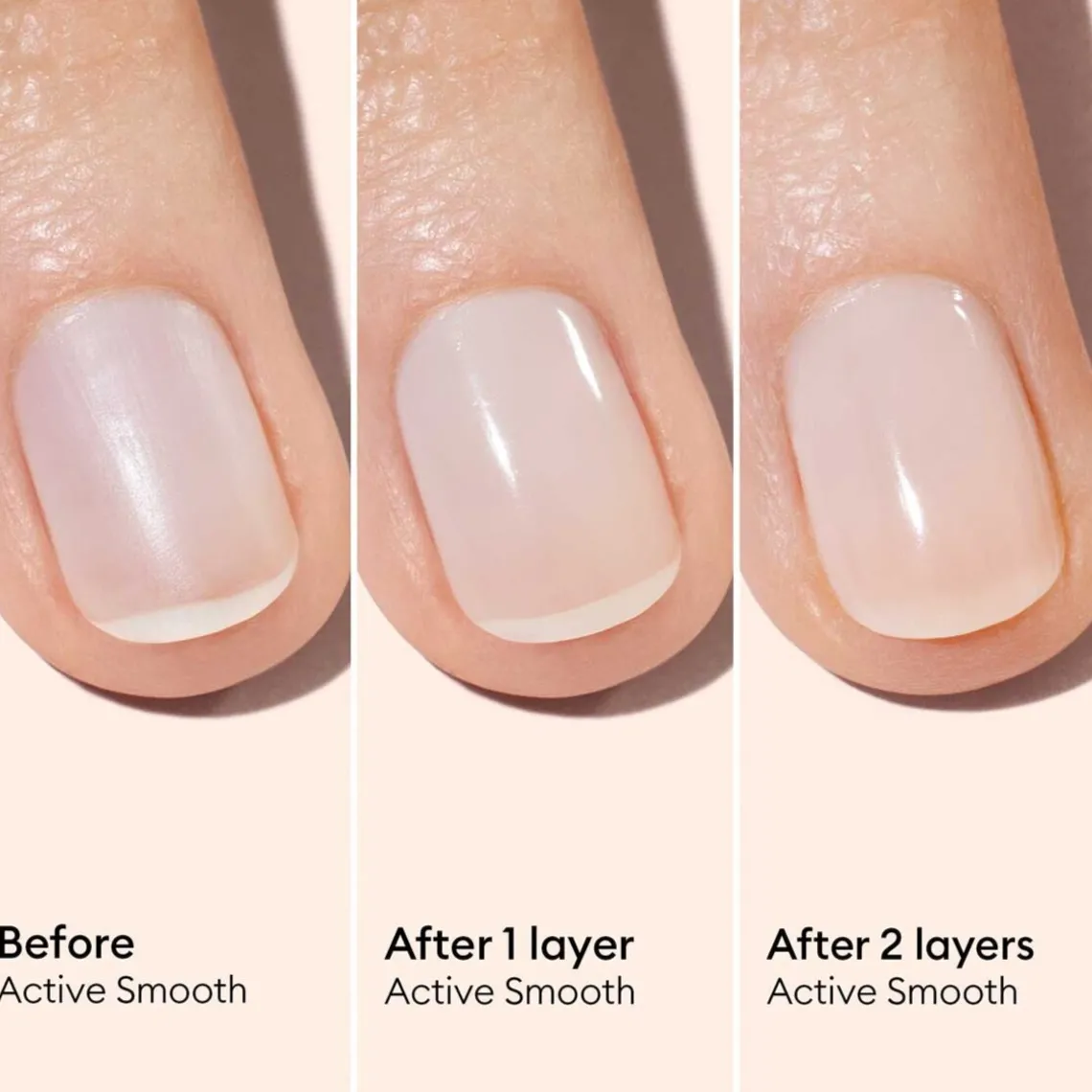 Active smooth er en unik lak, der ikke kun giver en fejlfri finish, men også plejer og forbedrer dine negle. Denne neglepleje udglatter ujævnheder, reducerer riller og skaber en jævn, ensartet overflade. Med sin lyserøde satinfinish og en formel, der indeholder 75% plantebaserede ingredienser, styrker neglelakken dine negle. Lakken indeholder ricinusfibre, hexanal, AHA’er og E-vitamin, som giver neglenen en sund og smuk glød.