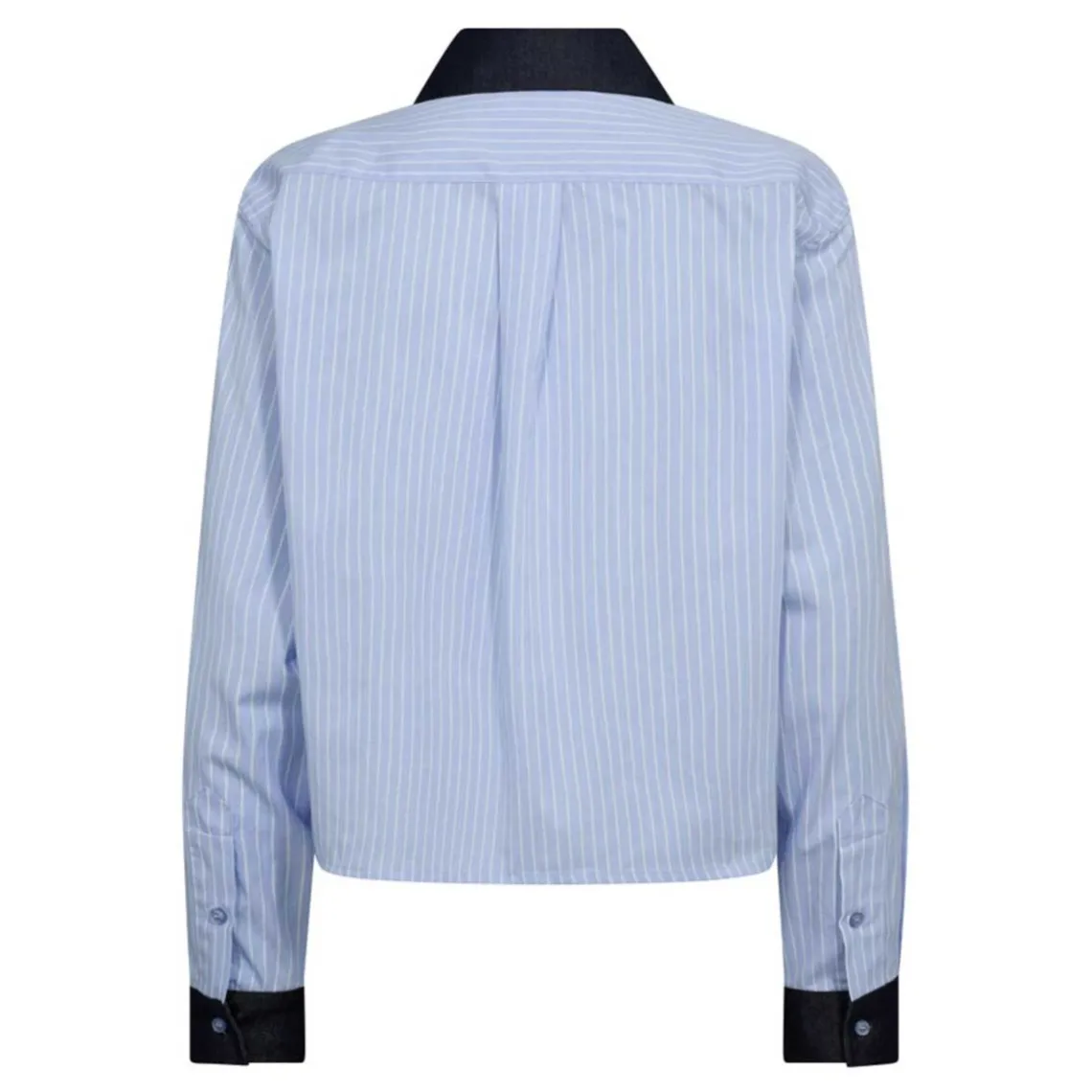 Nelson Stripe Shirt fra Co’Couture er en smart skjortebluse i en frisk pale blue farve. Blusen har lange ærmer, en klassisk spids krave og knaplukning langs fronten, som giver et stilrent og tidløst udtryk. Med en almindelig pasform er den let at style til både arbejde og fritid. Materiale: 100% bomuld