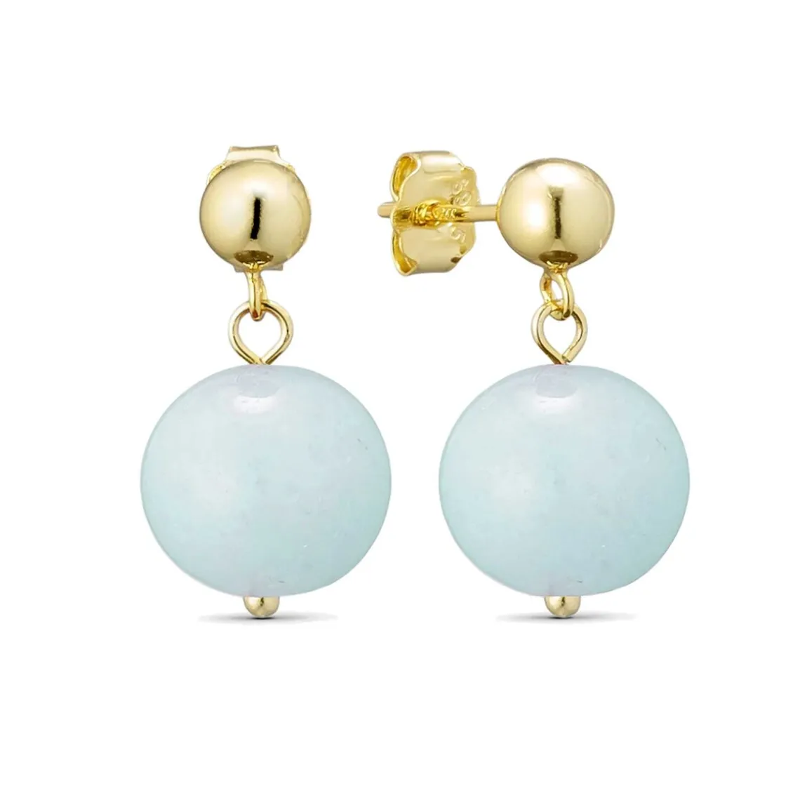 Nora Aquamarine Earrings er skabt med intentionen om at styrke mod, give beskyttelse og bringe mere glæde ind i hverdagen. Aquamarin forbindes med beroligende egenskaber, der kan hjælpe med at lindre stress og skabe indre ro. De klare blå nuancer symboliserer klarhed og balance, og øreringene er udført med stor omhu og finesse – et smykke, der udstråler positiv energi og harmoni. Materiale: 18 karat forgyldt sterlingsølv (925)