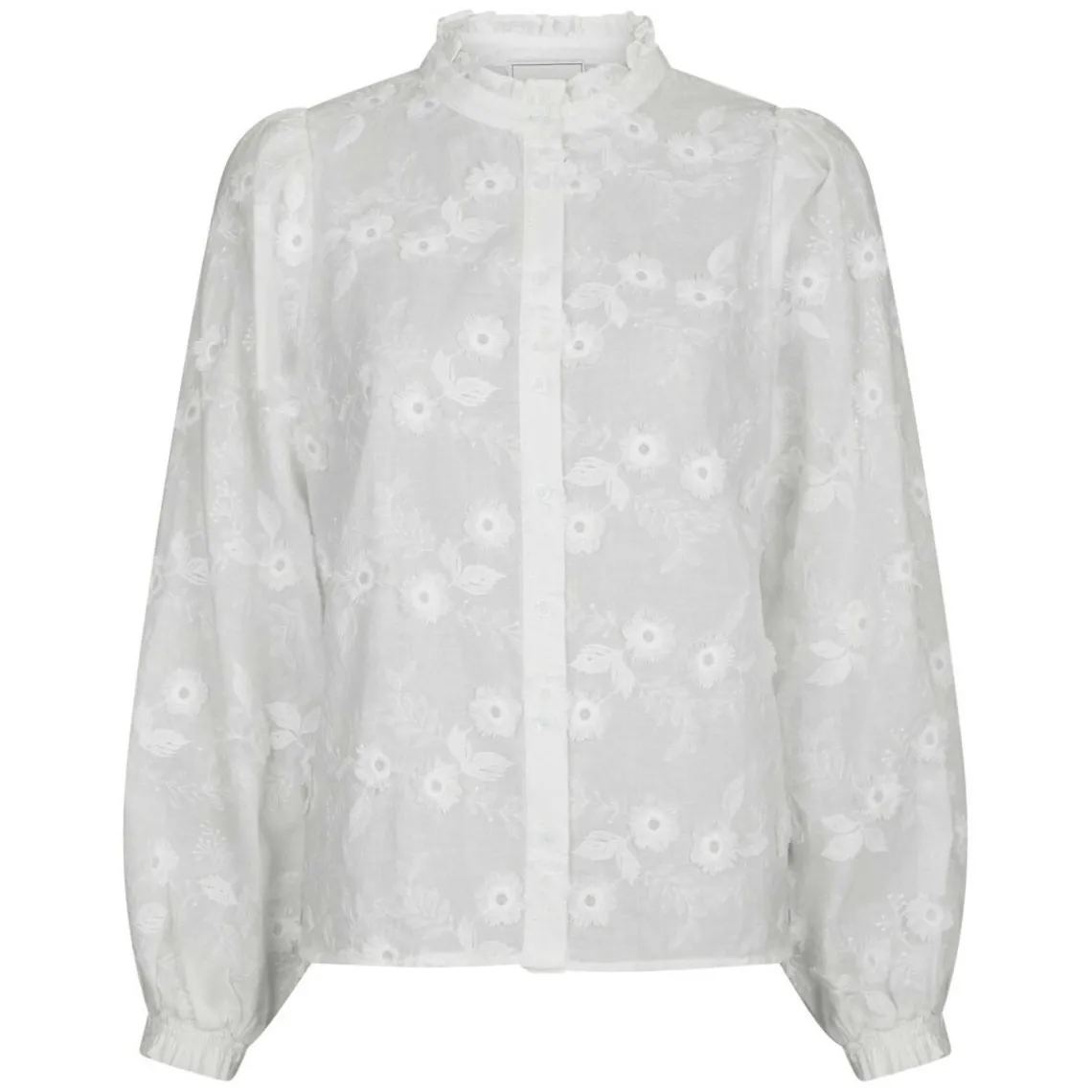 Sød og feminin skjorte i et enkelt design med smukke broderidetaljer. Skjorten er let at style til både hverdag og mere festlige lejligheder og giver et elegant og afslappet look. Materiale: 95% bomuld, 5% polyester