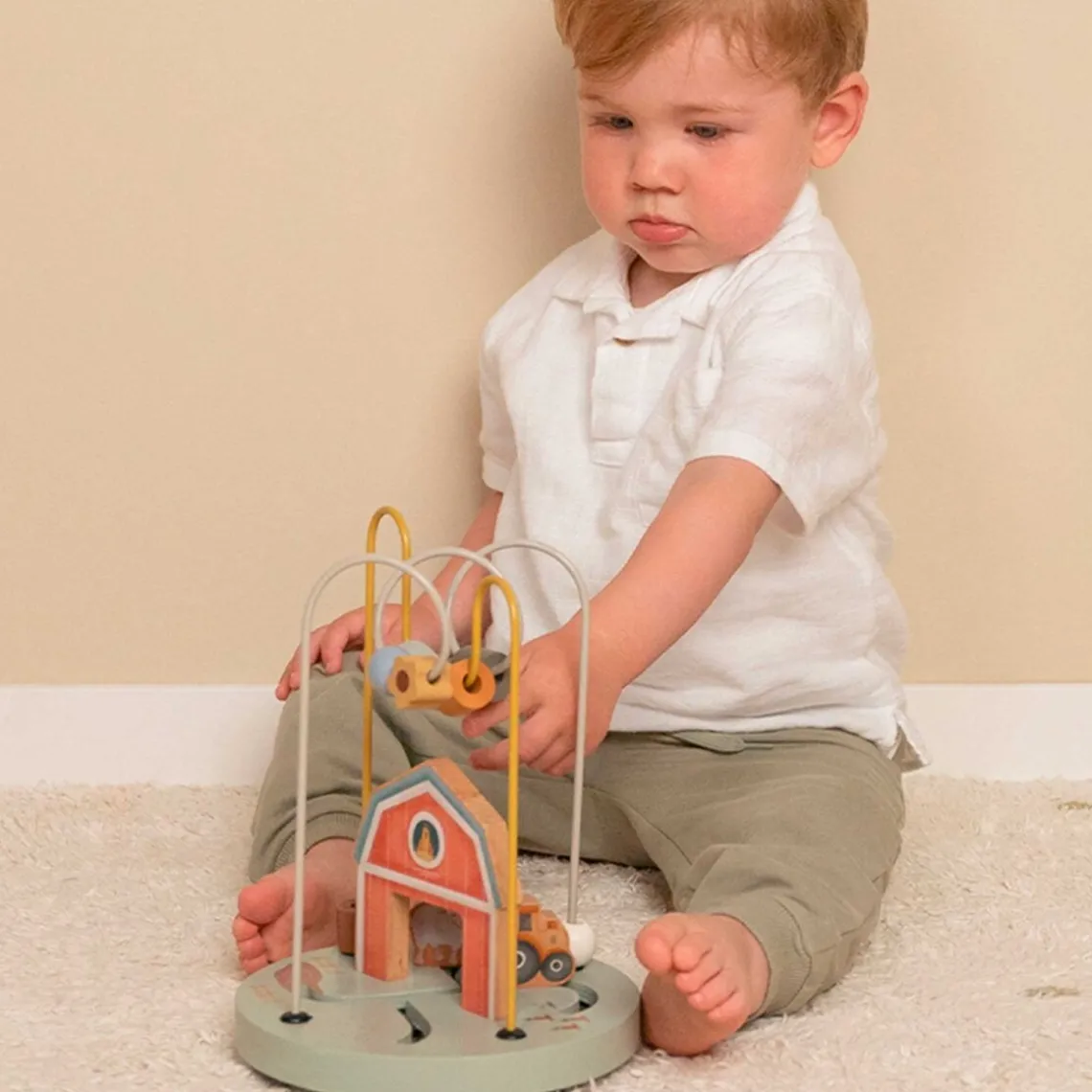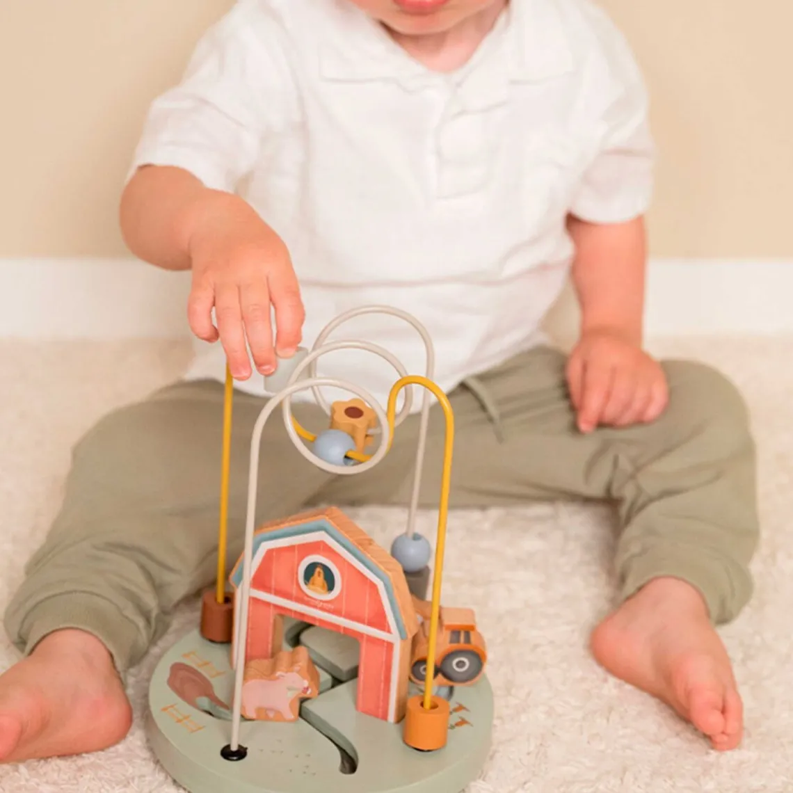 Little Farm-perlelabyrinten fra Little Dutch er et charmerende trælegetøj med bondegårdsdyr og farverige perler, som børn kan flytte langs slyngede stænger. Den stimulerer finmotorik, koncentration og nysgerrighed hos små hænder – perfekt til legende udforskning og tidlig læring.