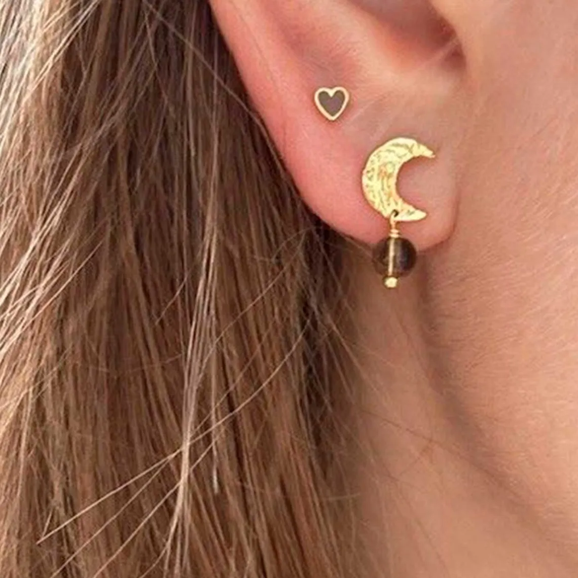Tilføj et råt og unikt touch til dit smykkeskrin med denne lille ørestik i forgyldt sterlingsølv. Ørestikken har et månedvedhæng med en ru, banket overflade og en smuk røgkvarts, der giver en subtil, cool elegance. Dens iøjenfaldende design gør den perfekt til mix & match med andre øreringe eller behind-ear vedhæng fra STINE A Jewelry, så du kan skabe dit eget personlige look. Materiale: 18 karat forgyldt 925 sterlingsølv, røgkvarts