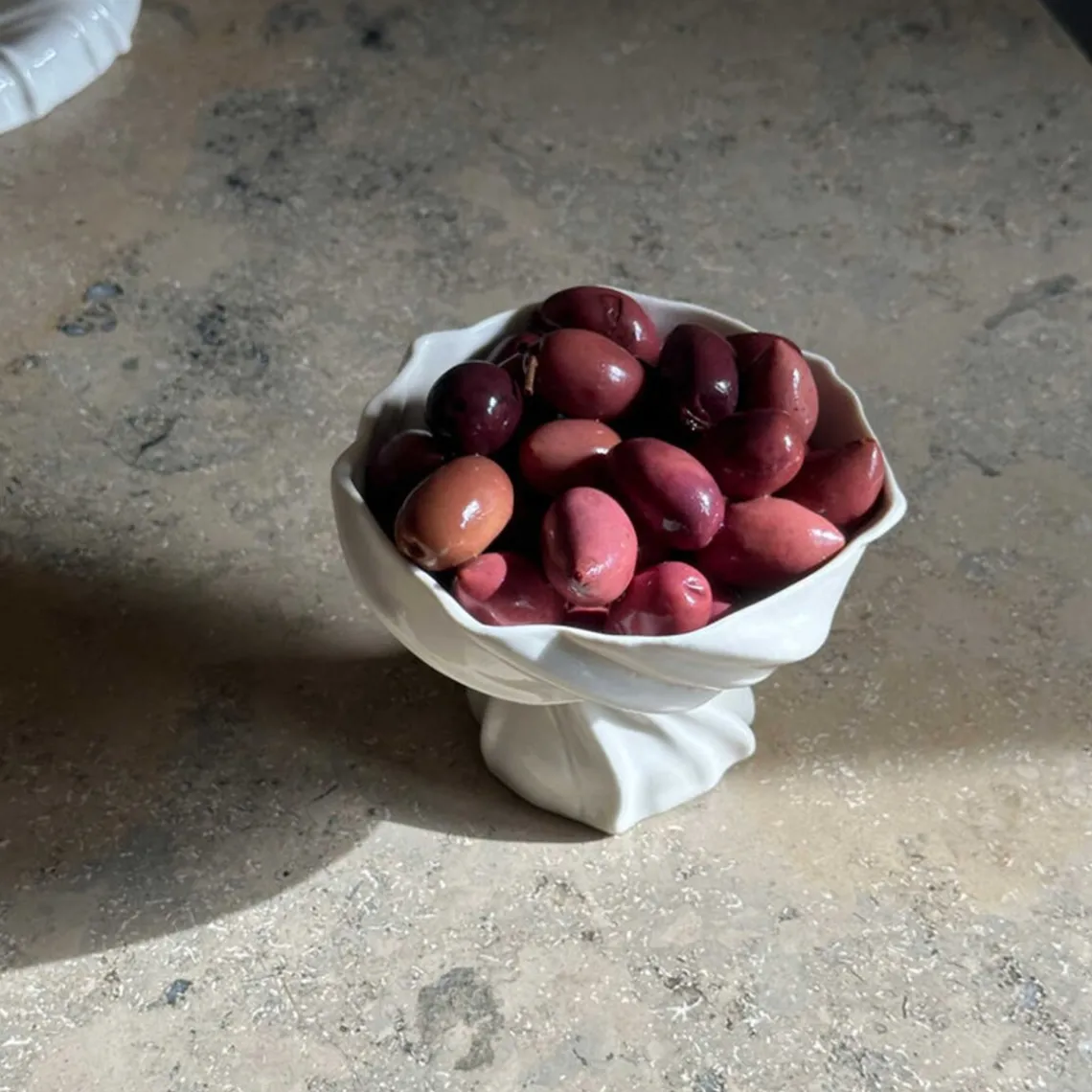 Overfladen er inspireret af den bølgede sandbund, når vandet trækker sig tilbage og blotter den nøgne havbund – det helt særlige ved dette foranderlige område. Opsatsen er håndlavet, og der kan forekomme små variationer fra opsats til opsats, hvilket gør hver enkelt unik. Mål: D11 x H9 cm