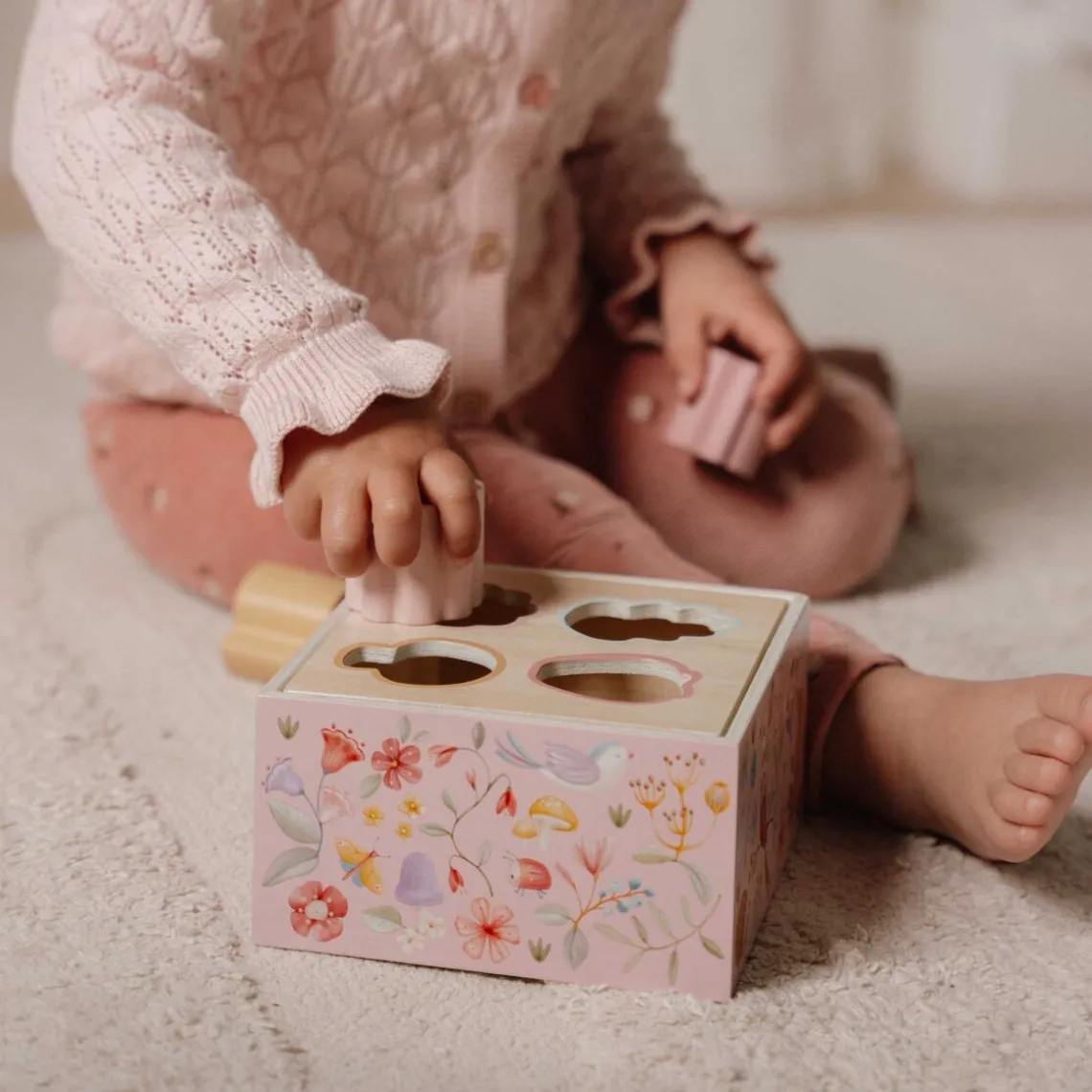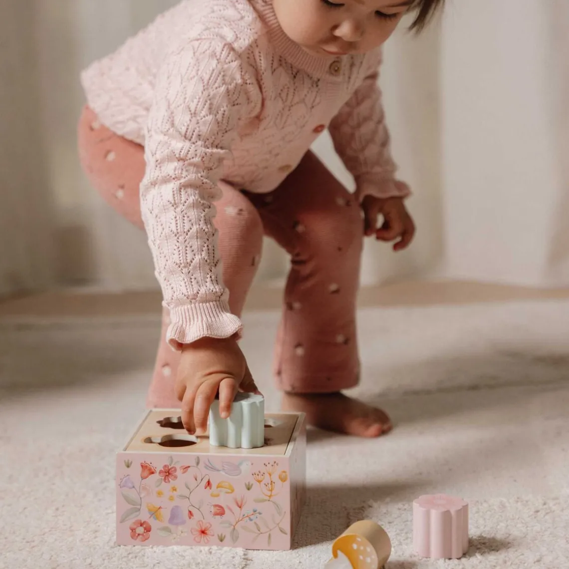 Puttekassen fra Little Dutch kombinerer leg og læring på en kreativ og underholdende måde. Her kan barnet øve sig i at genkende både former og farver, samtidig med at hånd-øje-koordinationen styrkes. De solide træklodser er dekoreret med det fine Fairy Garden-univers og forestiller blandt andet et jordbær, en svamp, en blomst og et blad. Barnet udfordres til at finde den rigtige åbning til hver figur, og de børnevenlige former gør det nemt for små hænder at gribe og placere klodserne korrekt. Et tidløst stykke legetøj, der inviterer til mange timers sjov og udviklende leg. Mål: 18,6 x 14,7 x 19,3 cm