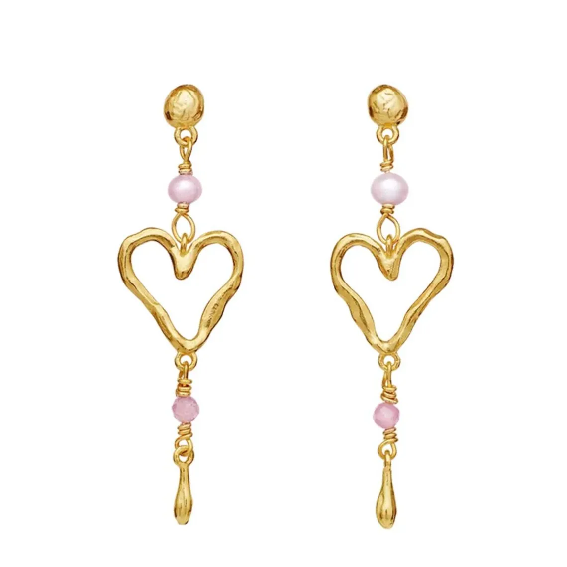 Sabi øreringe fra Maanesten. Deres Sabi øreringe er et kærligt strejf af hjertevarm passion, spædet med blide energier af balance, jordforbindelse og renhed, som kommer fra små dråber af ferskvandsperler og turmalin.