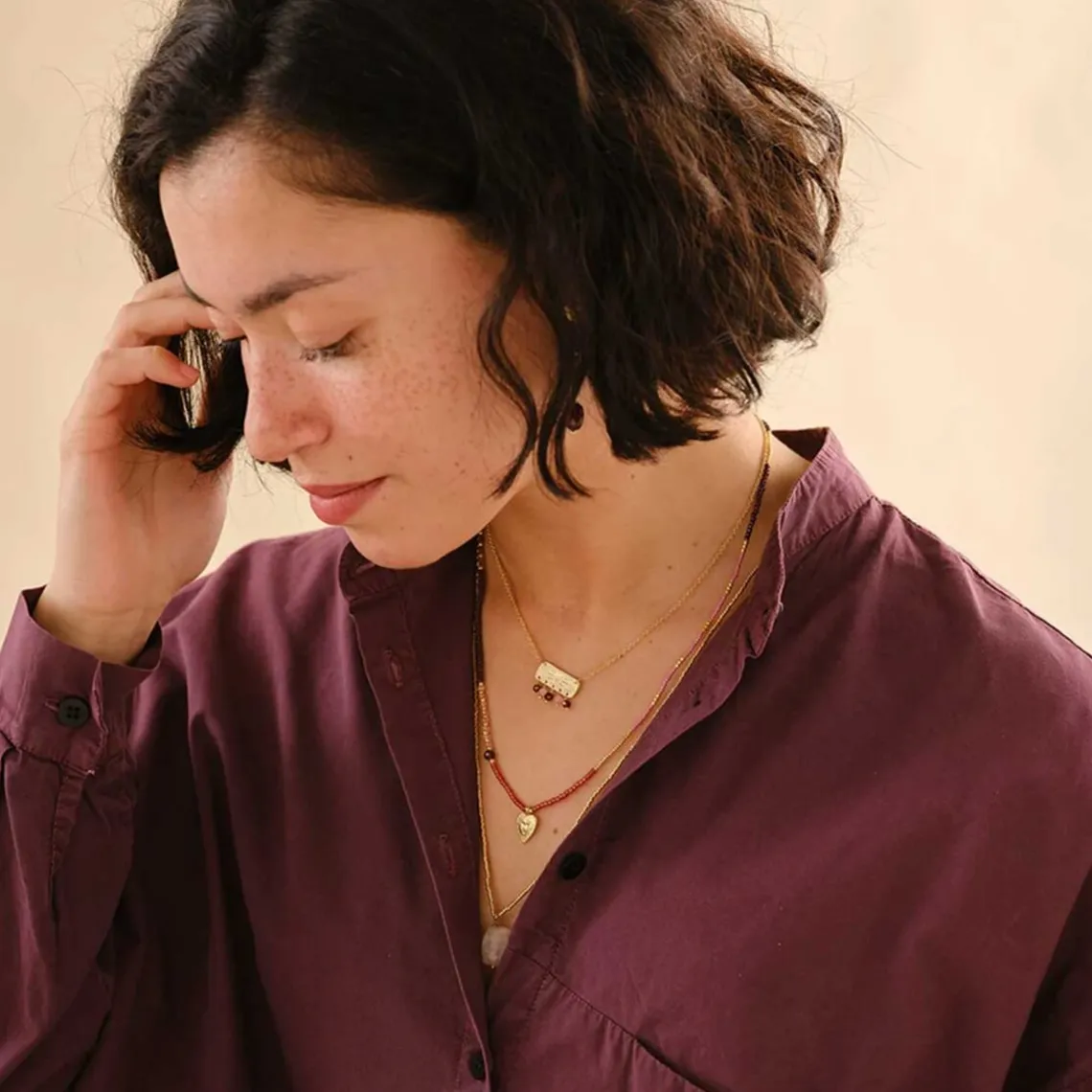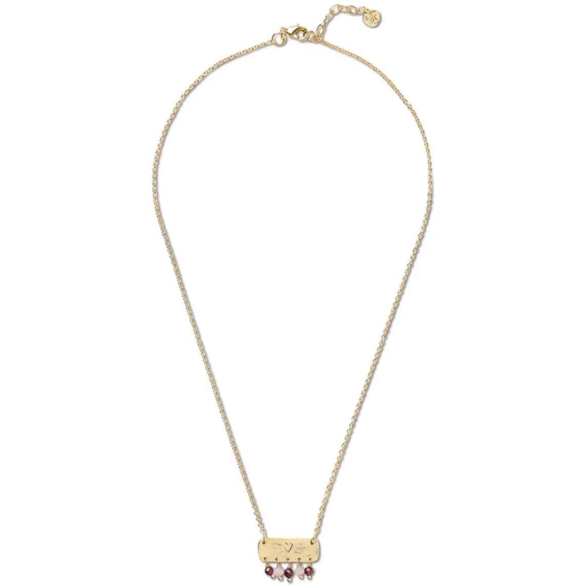 Oplev deres Sanity halskæde, lavet af guldbelagt messing med fem små facet-slebne ædelstensvedhæng. Kæden lukkes med en guldbelagt lås. Granat hjælper dig med at genfinde din energi og indre styrke.