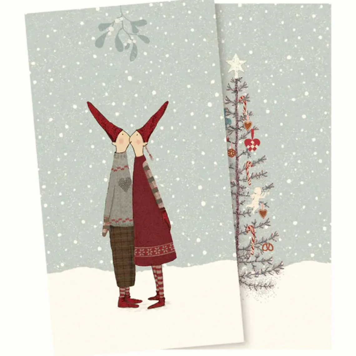 Dekorationen på denne serviet er oprindelig Dorthe Mailils personlige tegninger. Efter en grafisk proces har servietterne fået et smukt udtryk med forskellige illustrationer, der fuldender julestemningen.