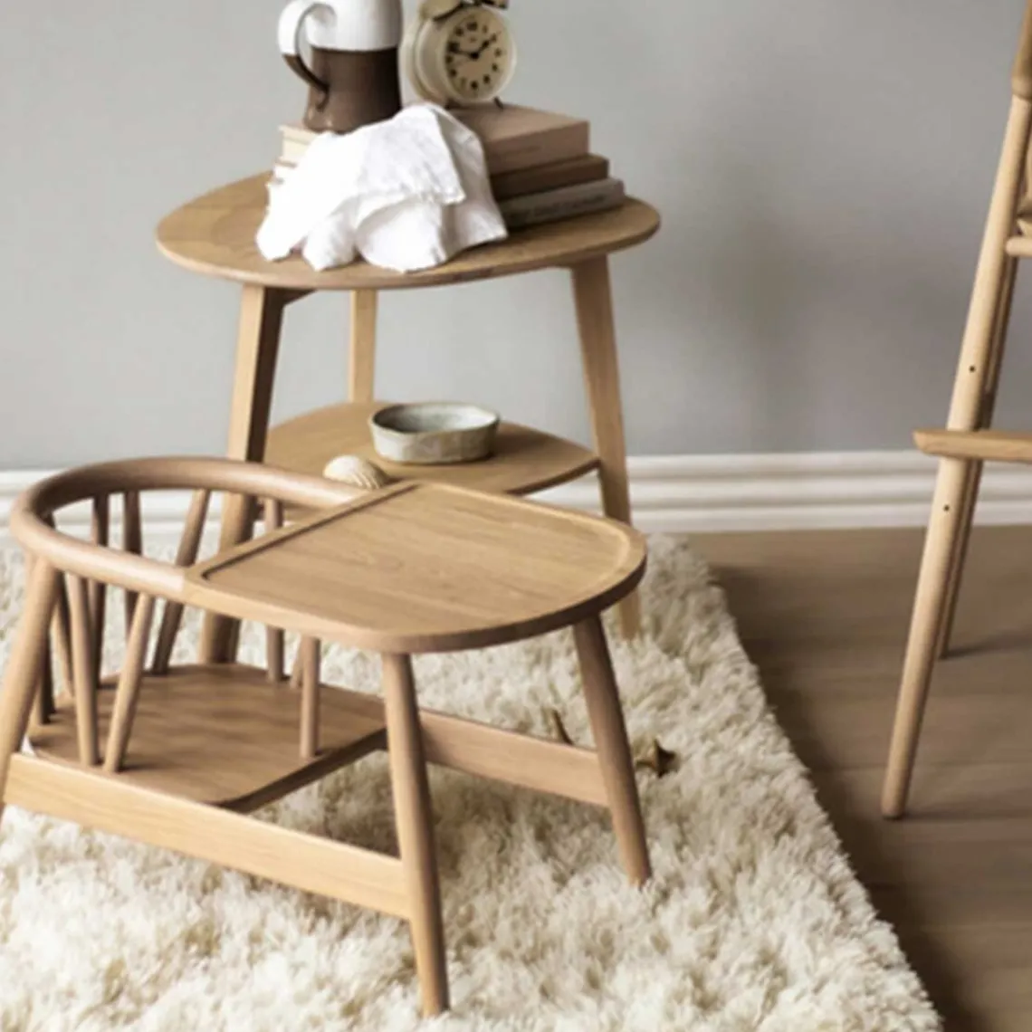 Med Smilla har Oaklings skabt et børnemøbel,der gør det muligt for familiens yngste at interagere med resten af familienrundt om sofabordet eller i køkken/alrummet. Det lille bord giver mulighed forbåde spisning og leg i trygge rammer.