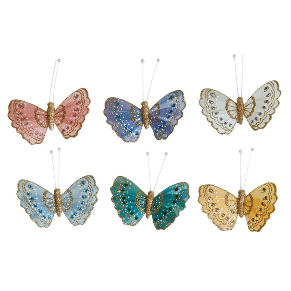 Sommerfugl på clips fra Speedtsberg. Her får du en smuk og dekorativ sommerfugl. Denne sommerfugl kan du have liggende på bordet som bordpynt, eller siddende på en gren.