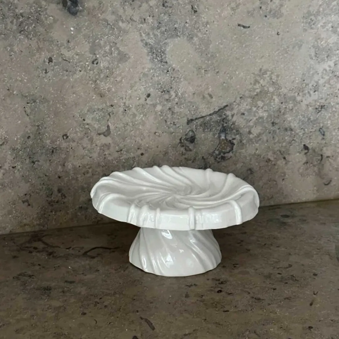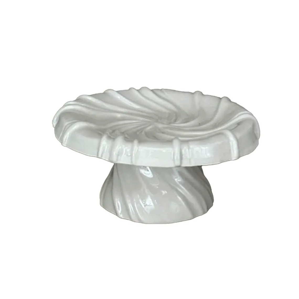 Fadet er håndlavet i Århus i det fineste hvide porcelænsler. Det er tiltænkt som et serveringsfad til kager eller som et dekorativt element til at udstille dine yndlingsting.