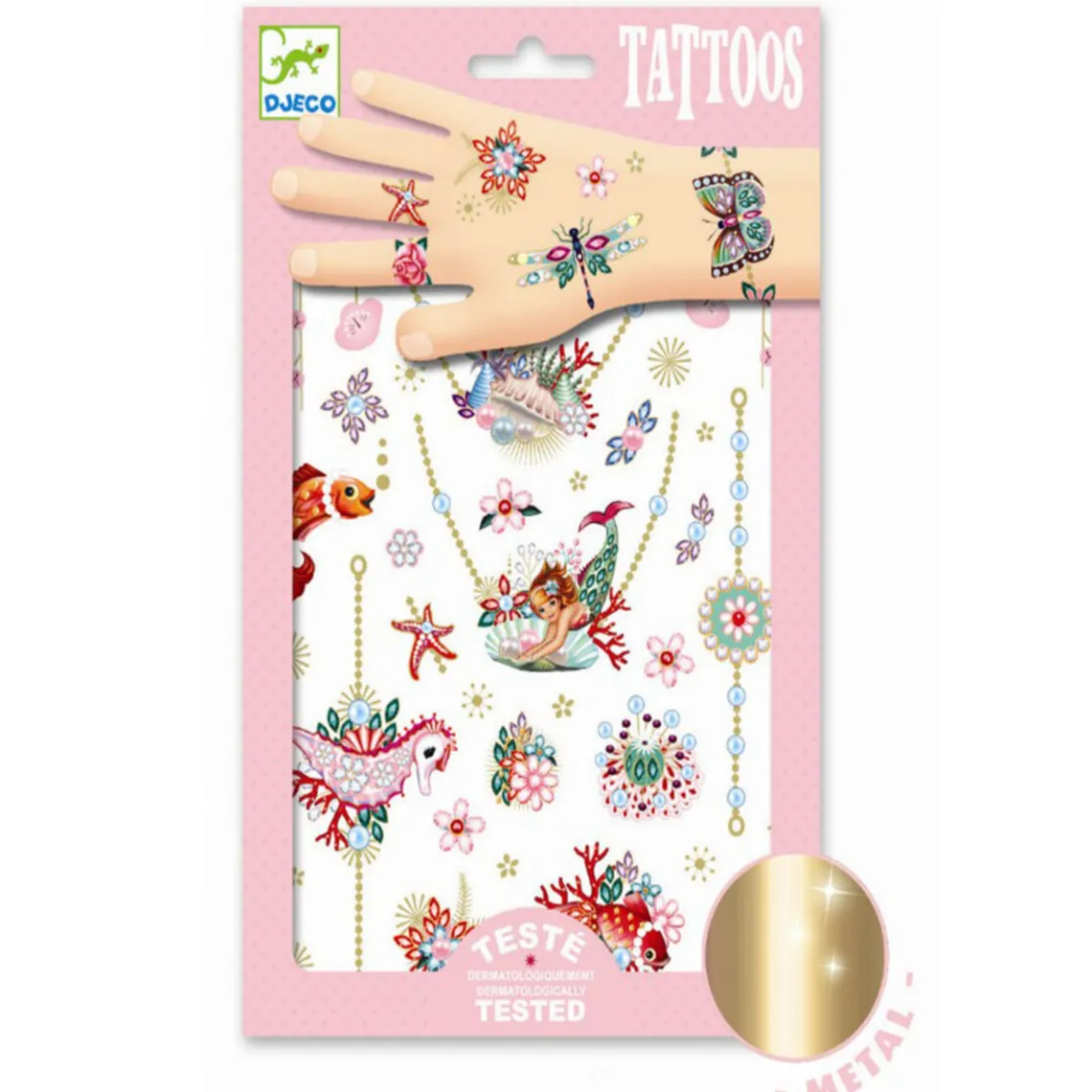 I denne pakke får du flere end 50 flotte og farvestrålende store og små tatoveringer. Tatoveringerne er dermatologisk testede, men det er en god idé, altid først at test med en lille tatovering, om barnet kan tåle dem.