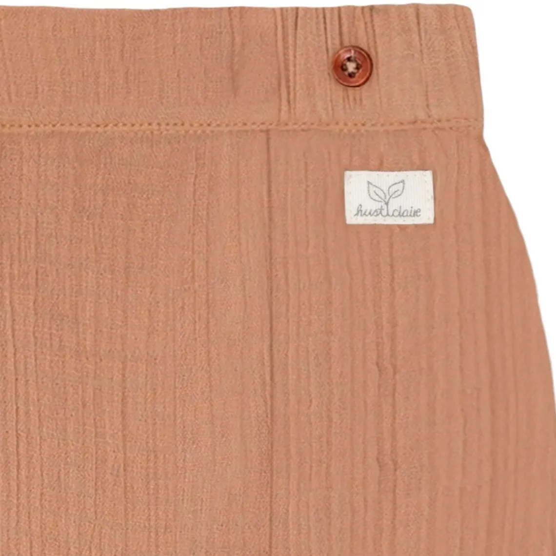 Bløde og luftige bukser i muslin, perfekt til leg og afslapning. Elastik i taljen sikrer god pasform, mens det lette stof holder barnet komfortabelt hele dagen. Materiale: 100% økologisk bomuld