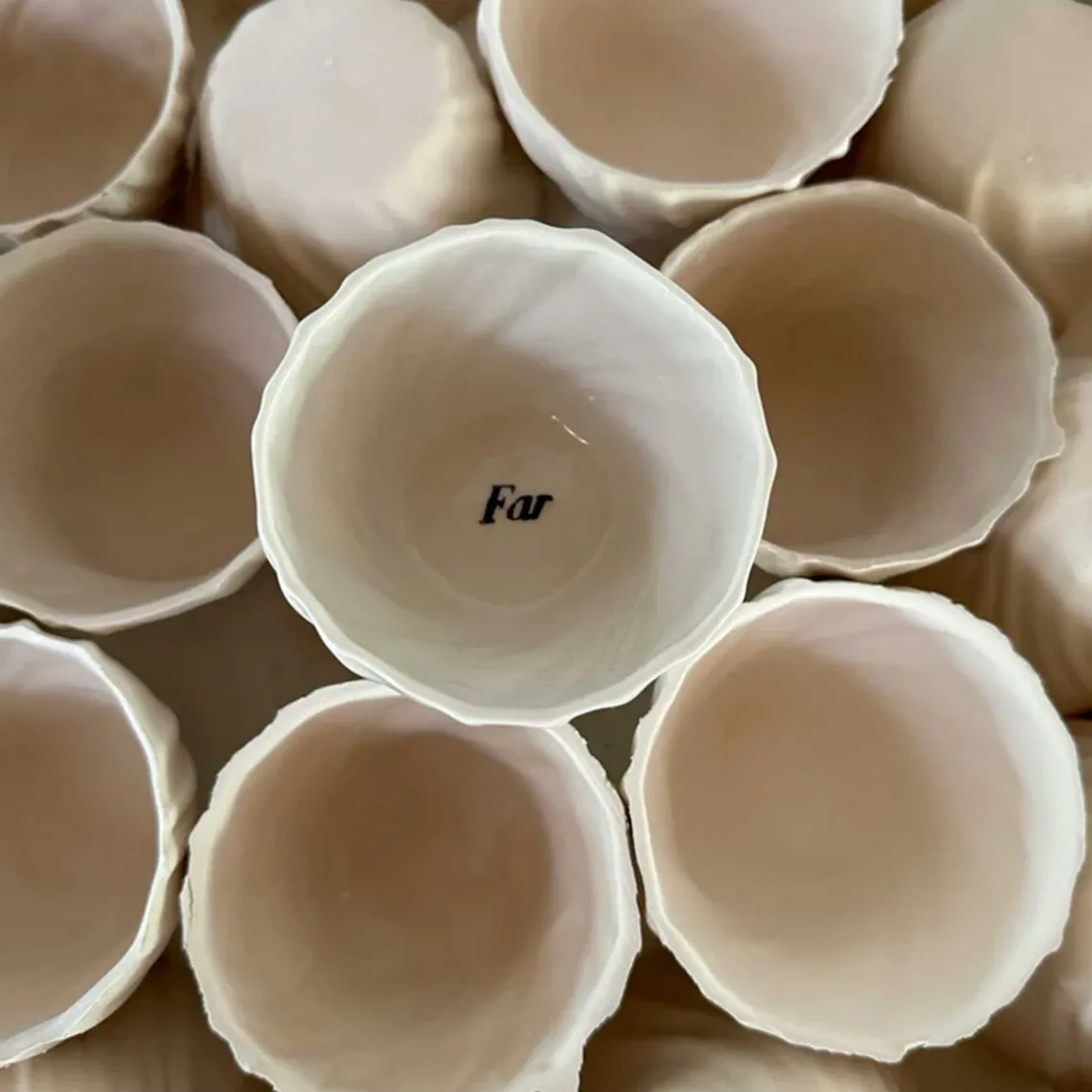 Denne kop er påtrykt teksten “far” indeni. Koppen er håndlavet i Aarhus i det fineste hvide porcelænsler. Den tåler opvaskemaskine og har en størrelse, der passer perfekt ind i din kop-reol.
