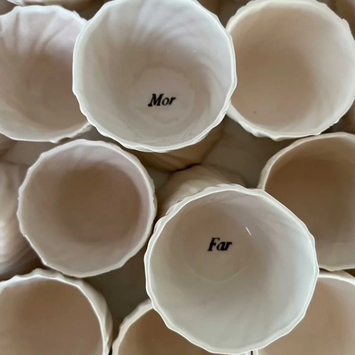 Overfladen er inspireret af den bølgede sandbund, som opstår, når vandet trækker sig tilbage og blotter den nøgne havbund – et sanseligt udtryk fra et særligt og foranderligt landskab. Da hver kop er håndlavet, kan der forekomme små variationer, hvilket gør hver enkelt unik. Indhold: 240 ml