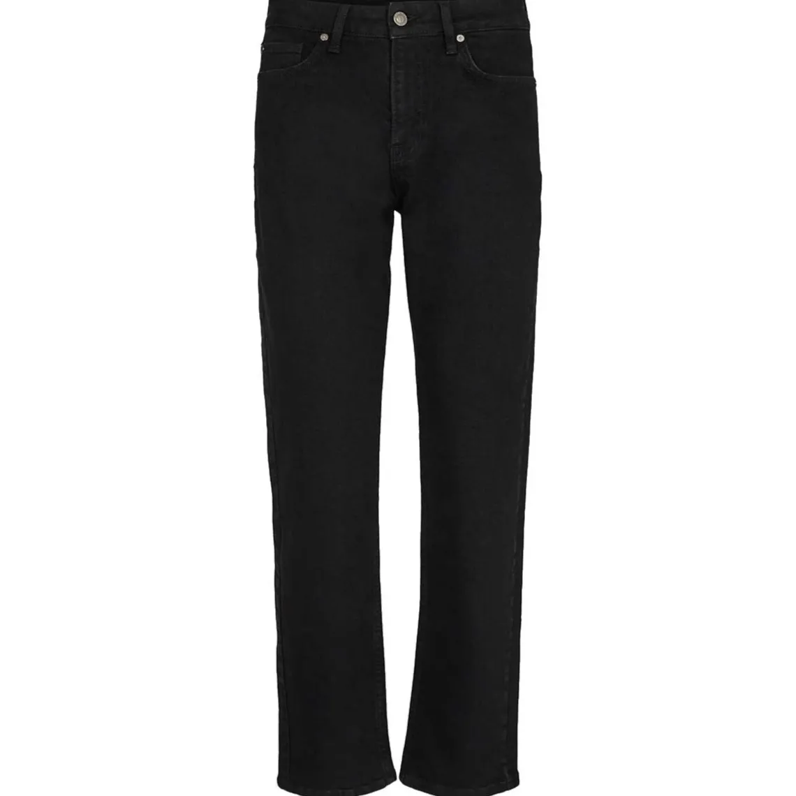 Her får du et par flotte jeans. Disse jeans er i en normal pasform med en høj talje, tilspidsede ben og de går til anklerne. Bukserne lukkes med lynlås- og knaplukning.