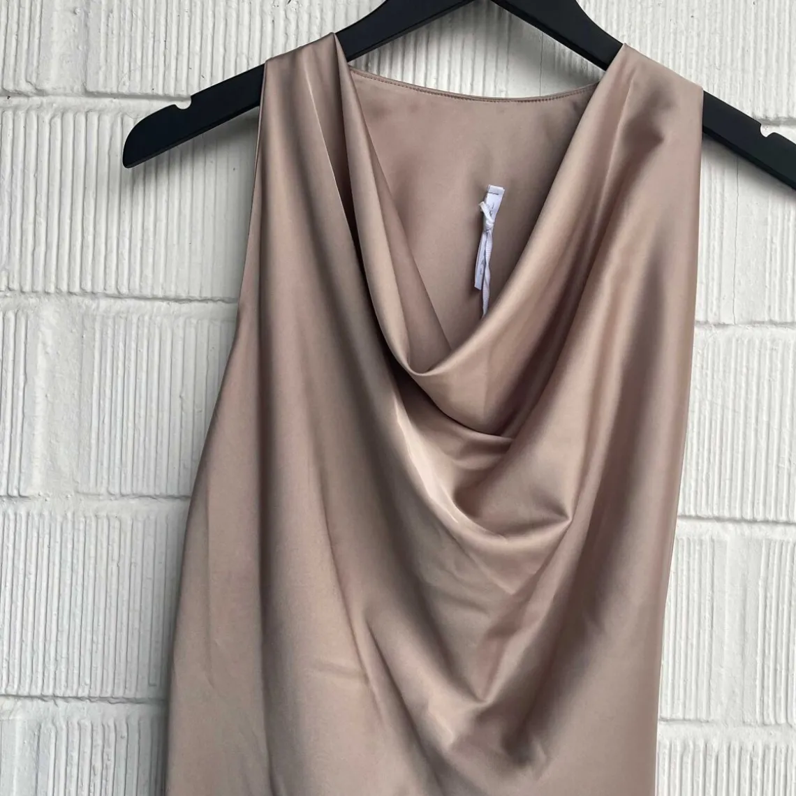 Top fra Imperial. Denne top kommer i det fineste satin look. Denne top har flot vandfaldsudskæring. Toppen har en klassisk ryg.