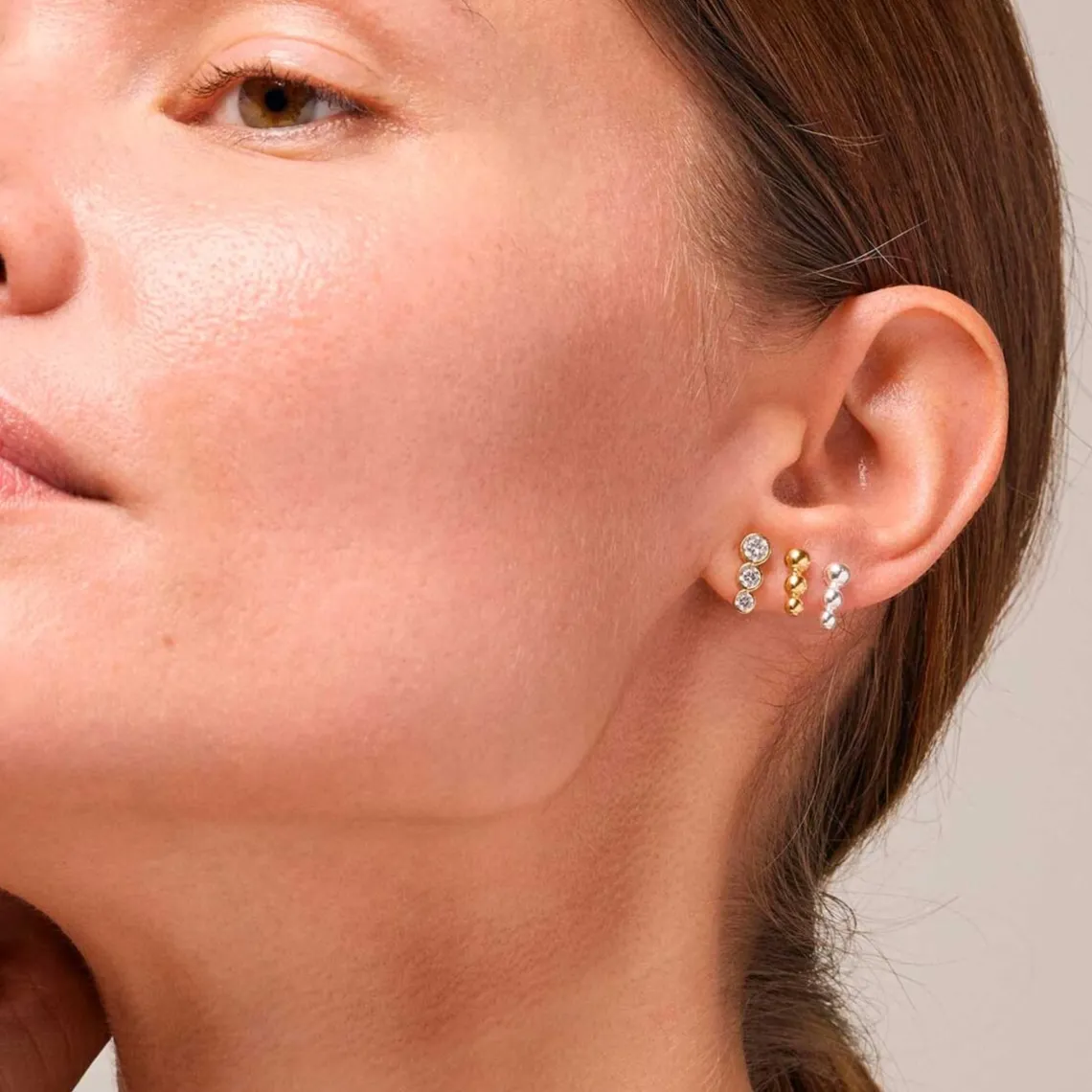 Tre kugler, i forskellige størrelser, danner disse skønne ørestikker, og skaber et stilrent design. Leder du efter et par små øreringe, med karakter og udtryk, er Trinity studs det helt rigtige valg.