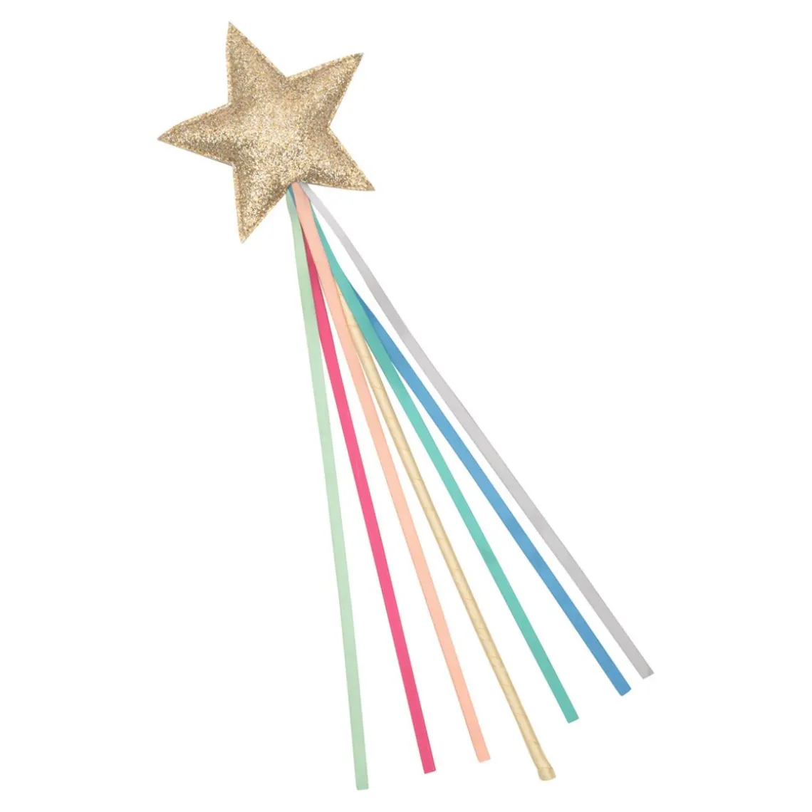 Spred magisk glimmer og eventyr med denne fortryllende tryllestav med en stor, gylden stjerne på toppen. Fra stjernen strømmer en hale af smukke, farverige satinbånd, der bevæger sig elegant, når man tryller. Stjernen sidder sikkert fast på en pind, der er betrukket med blødt satinbånd for et ekstra fint udtryk. Perfekt til leg, udklædning og små magiske øjeblikke. Alder: 3–8 år
