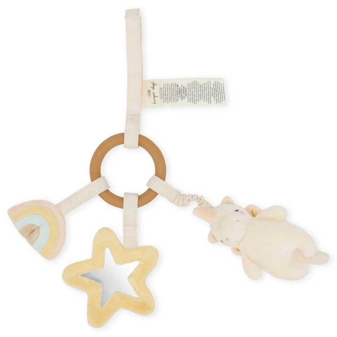 Unicorn Aktivitetsring fra Konges Sløjd er en magisk lille legekammerat til babyer, fyldt med sansestimulerende detaljer. Den søde enhjørning sidder på en praktisk ring og er omgivet af elementer som knitrelyde, en bidering og små stropper, der opfordrer til leg og udforskning. Perfekt til at hænge på barnevognen, aktivitetsstativet eller autostolen, så baby altid har sjov og tryg underholdning lige ved hånden.
