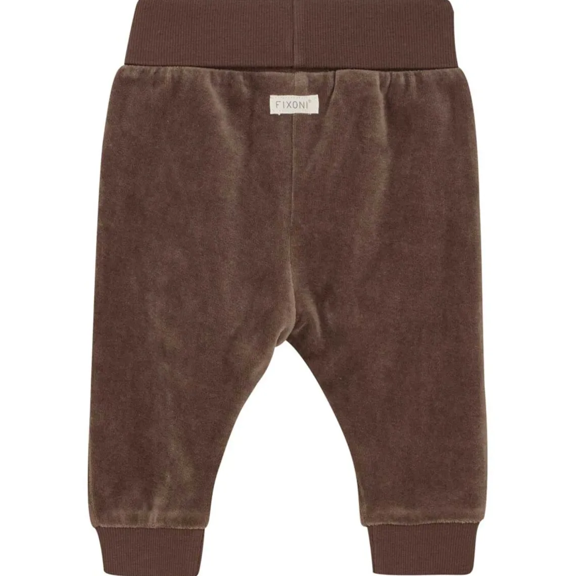 Bløde bukser fra FIXONI i ensfarvet velourkvalitet, der føles dejligt blød og behagelig mod huden. Bukserne har brede ribkanter ved benene og i taljen, som kan foldes efter behov for ekstra komfort og en god pasform. Perfekte til både hygge og hverdagsbrug. Materiale: 100% bomuld