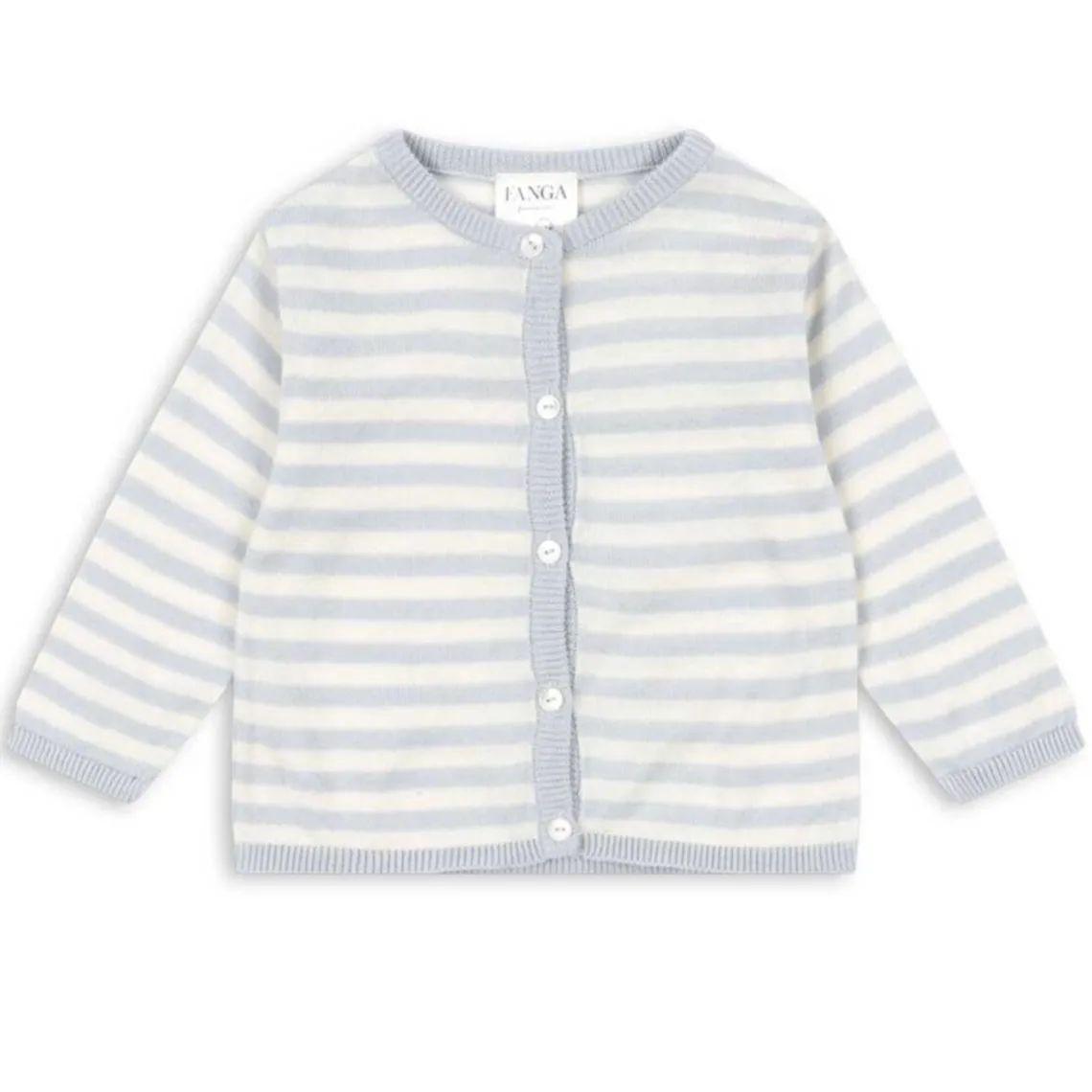 Med dekorative muslingekanter og perlemorsknapper foran er den både praktisk og elegant – perfekt til enhver lille garderobe.