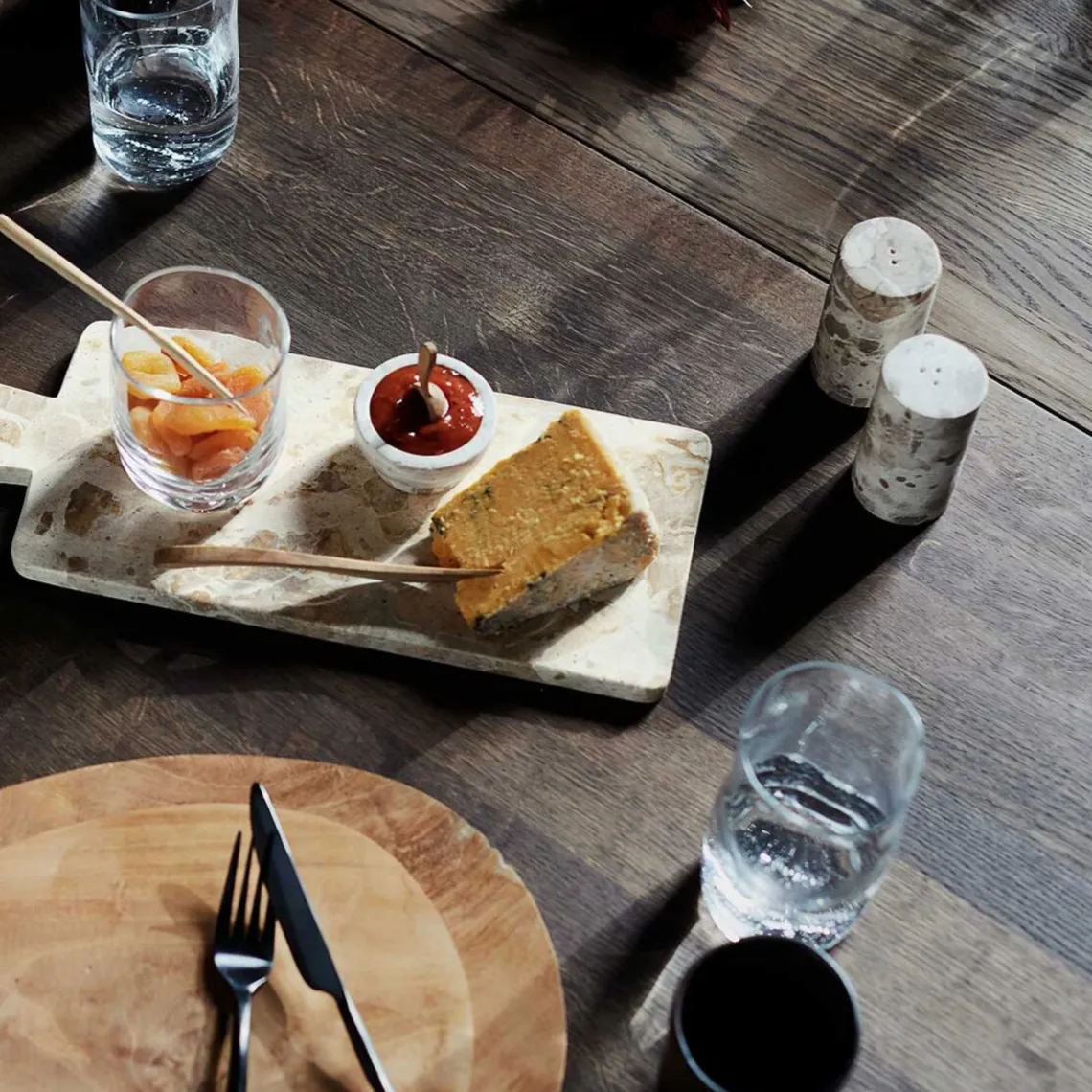 Tåler ikke opvaskemaskine. I stedet skal produktet vaskes op i hånden med neutralsæbe, da stærk og syreholdig sæbe kan beskadige den naturlige marmor.