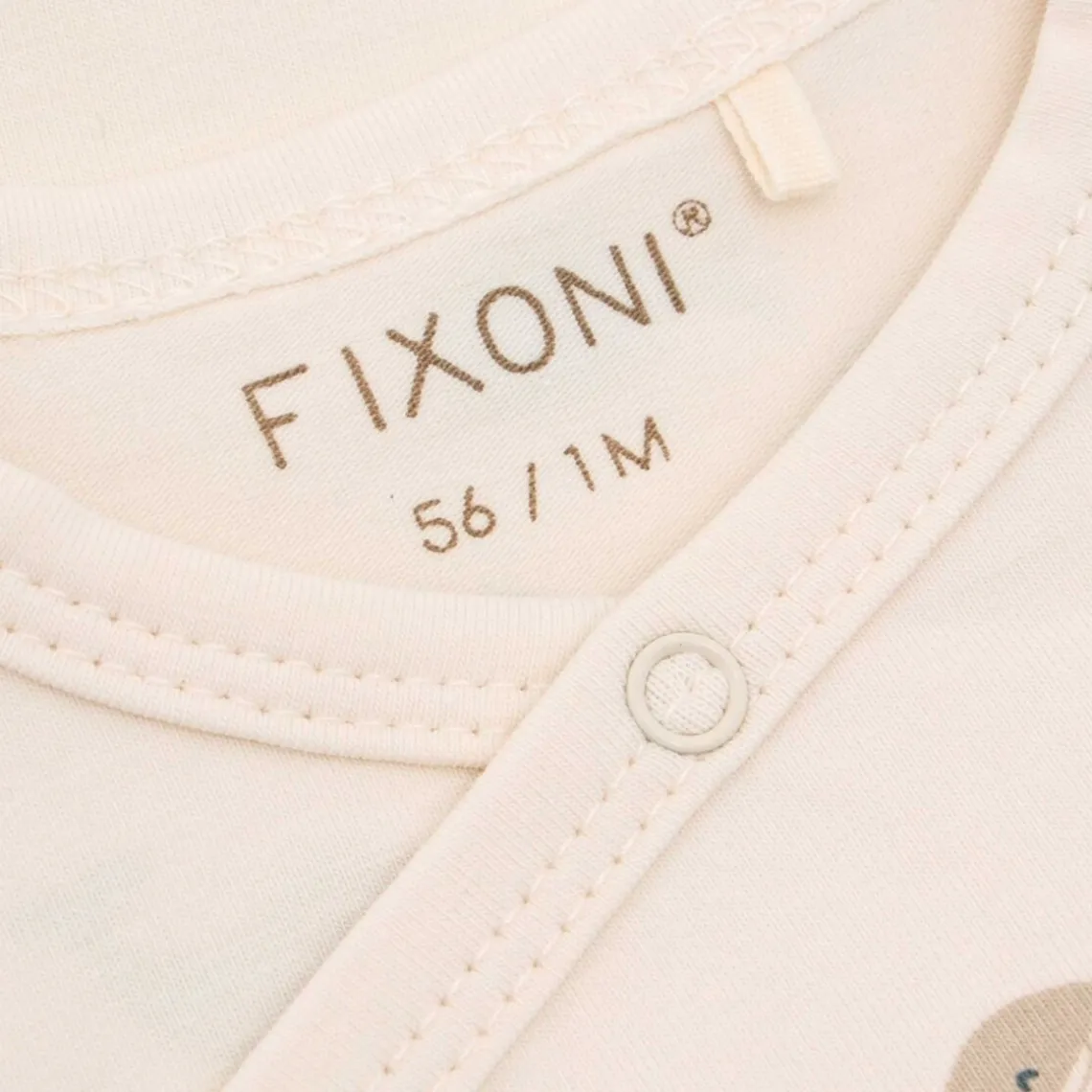 Langærmet slå-om-body fra FIXONI med fint allover-print i blød og strækbar kvalitet. Bodyen lukkes med praktiske trykknapper foran og mellem benene, hvilket gør den nem at tage af og på og giver høj komfort hele dagen.