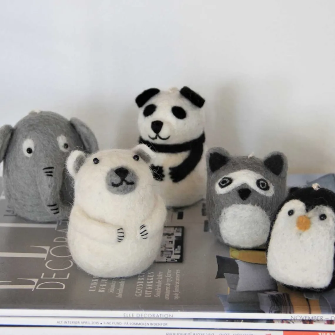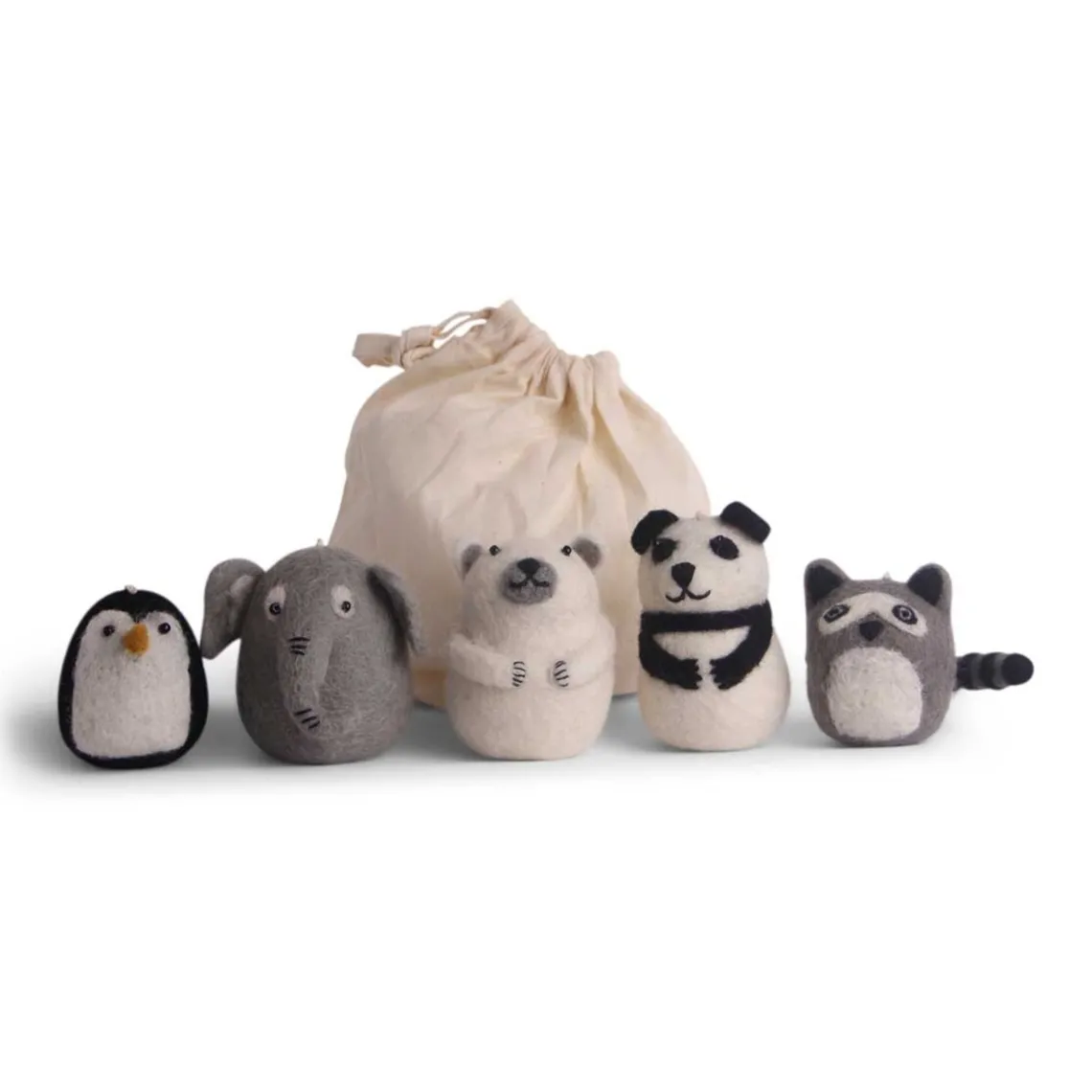 Håndlavet filtdyr fra Èn Gry & Sif. De er håndlavet i Nepal i ren uld. Denne pakke består af 5 x zoo dyr.