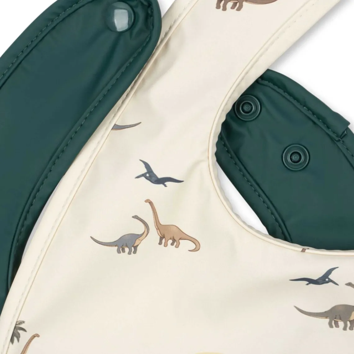 Sæt med to hagesmække i en praktisk, vandafvisende kvalitet, der er nem at tørre af og holde ren – perfekte til både hverdag og måltider på farten. Hagesmækkene er designet med en justerbar trykknaplukning i nakken med to indstillinger, så de nemt kan tilpasses barnets størrelse og sidder behageligt under hele måltidet. Materiale: 100% polyurethan