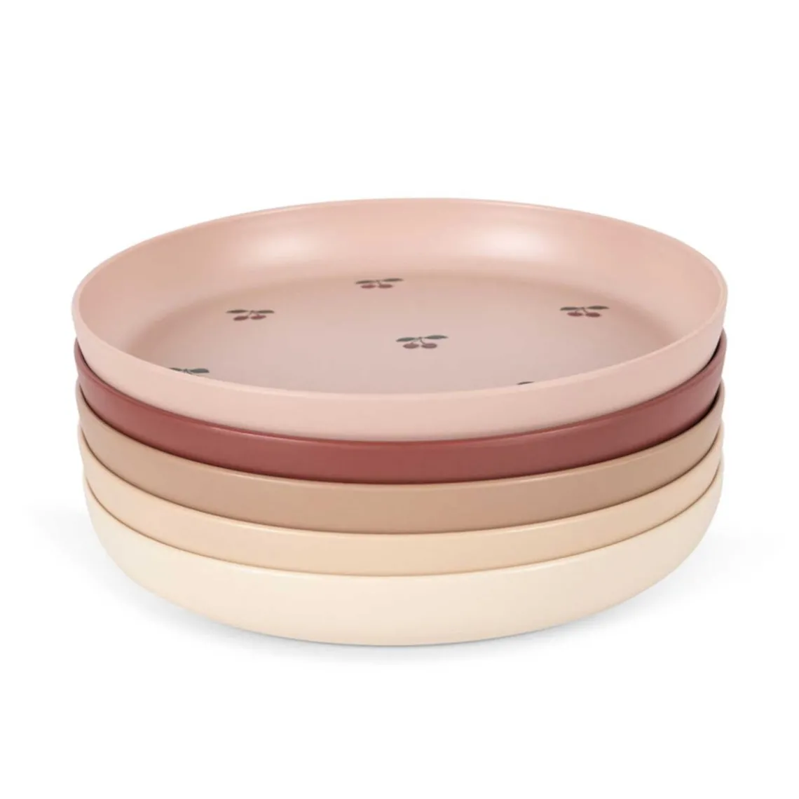 Praktisk sæt tallerkener lavet af genanvendt PET. Perfekte til små måltider eller som dekorative snacktallerkener. Indeholder 5 dele. Egnet fra 6 m+