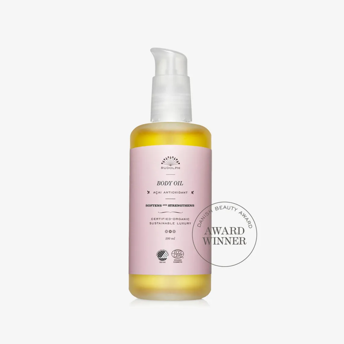 De økologiske olier fra acai, mandel, jojoba og oliven er propfyldt med antioxidanter, som beskytter og styrker huden, så den bliver blød og spændstig. Acai Body Oil vandt kategorien ”Årets Kropsplejeprodukt – Luksus” ved Danish Beauty Awards 2011.