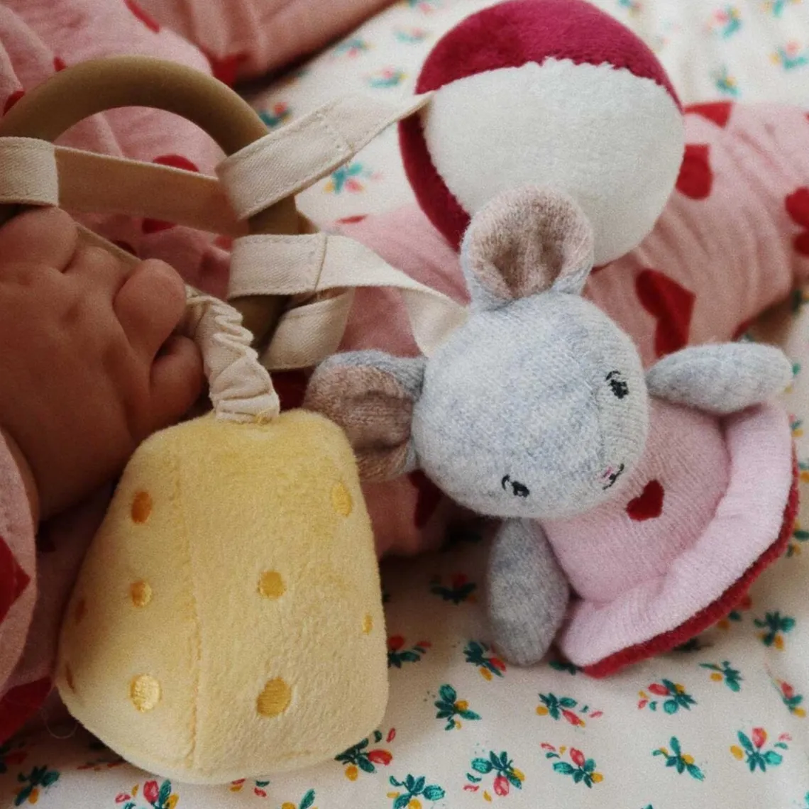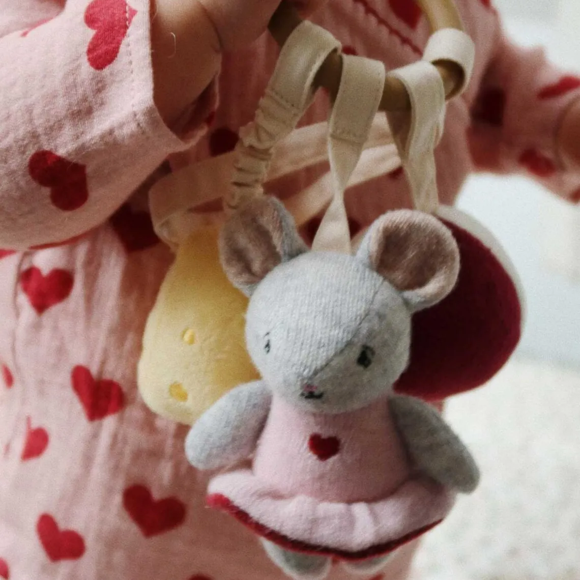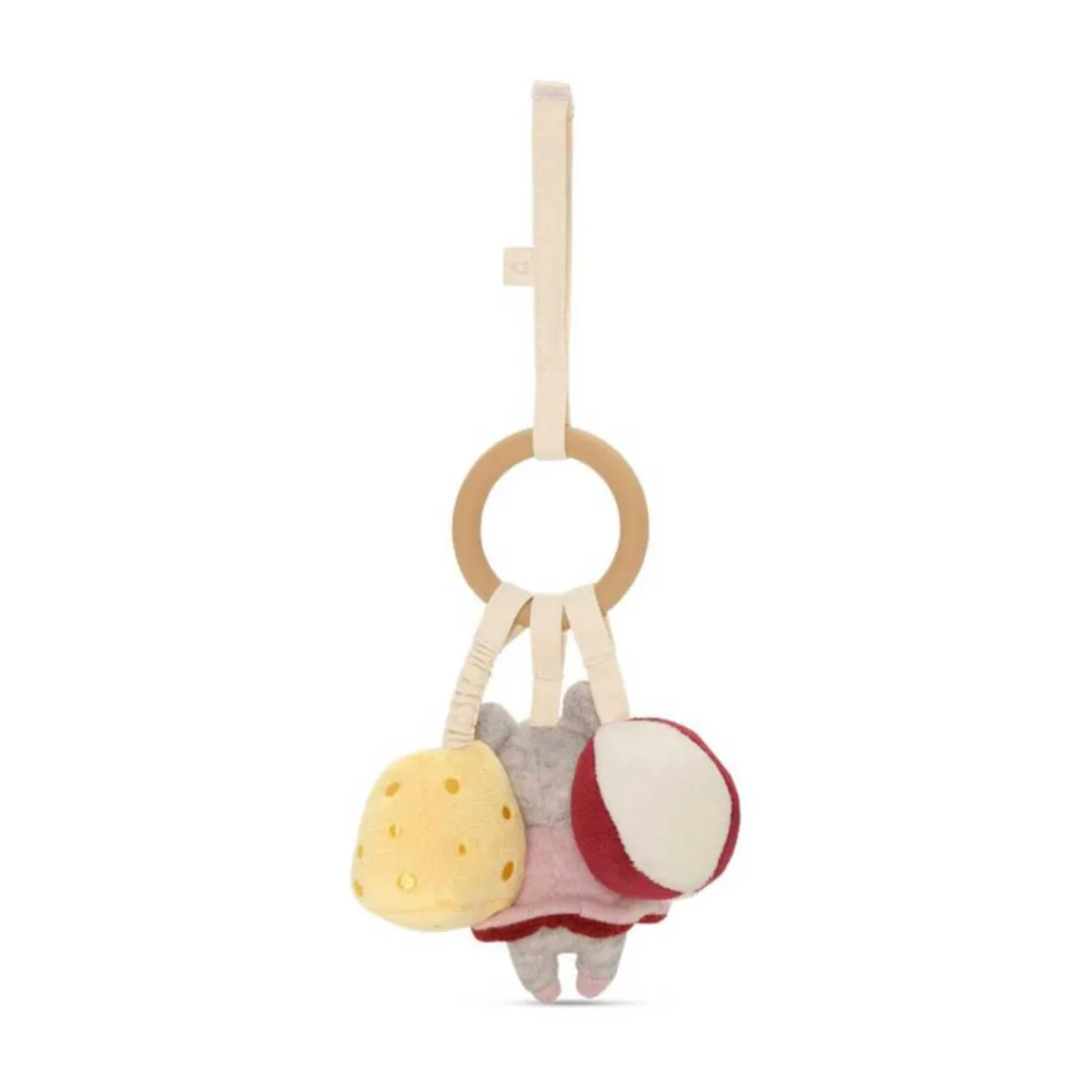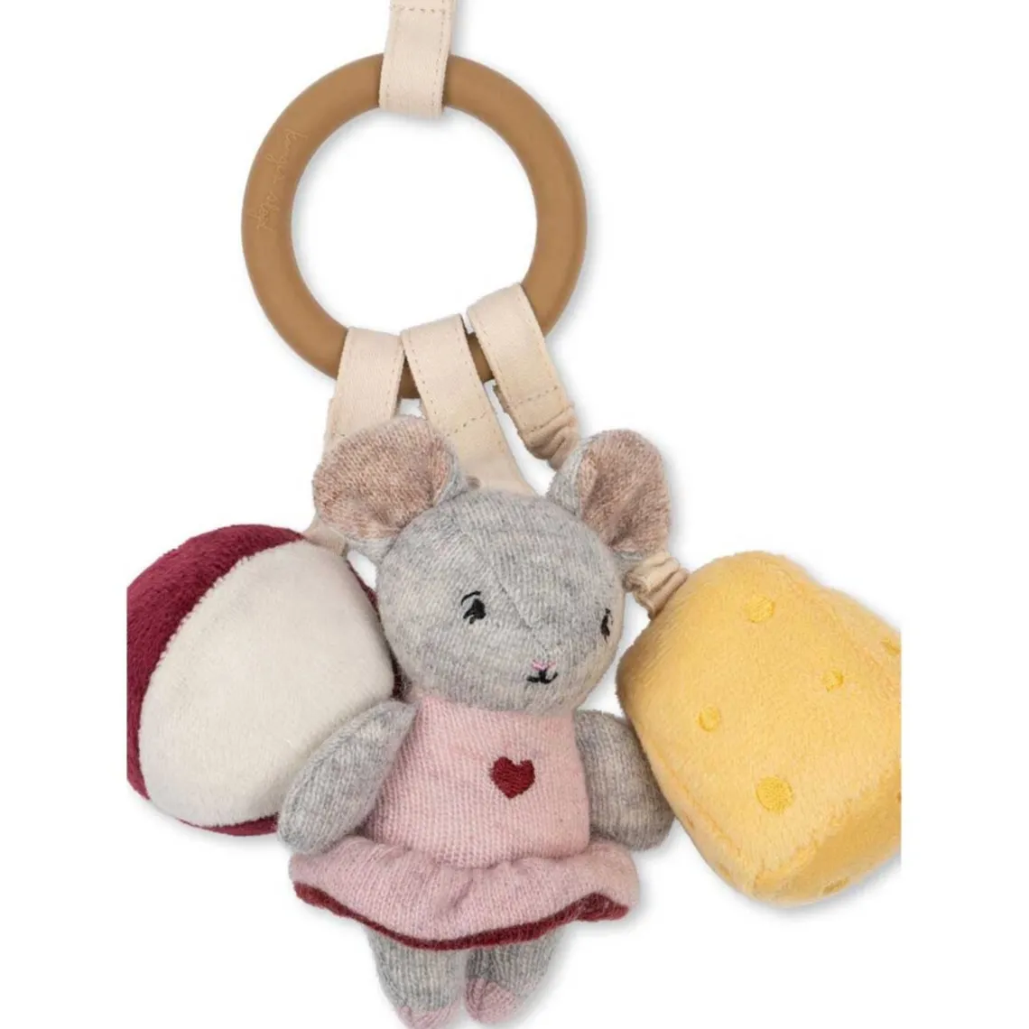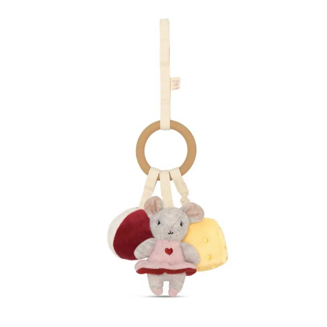 Aktivitetsringen Mus fra Konges Sløjd er en skøn lille sanselegeting, der stimulerer babyens nysgerrighed og udvikling. Ringen har en sød mus med fine detaljer, små aktivitetsdele som knitrelyde, bidering og små stropper, der indbyder til leg og udforskning. Perfekt til at hænge på barnevognen, aktivitetsstativet eller som underholdning hjemme og på farten.