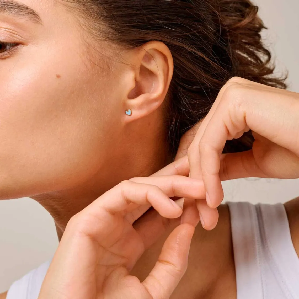 Amore studs i den stålblå farve er klædelig og udtrykker ro, varme og hengivenhed til en person, der står dig nær. Kvalitet: 18k Gold Plated Recycled Sterling Silver