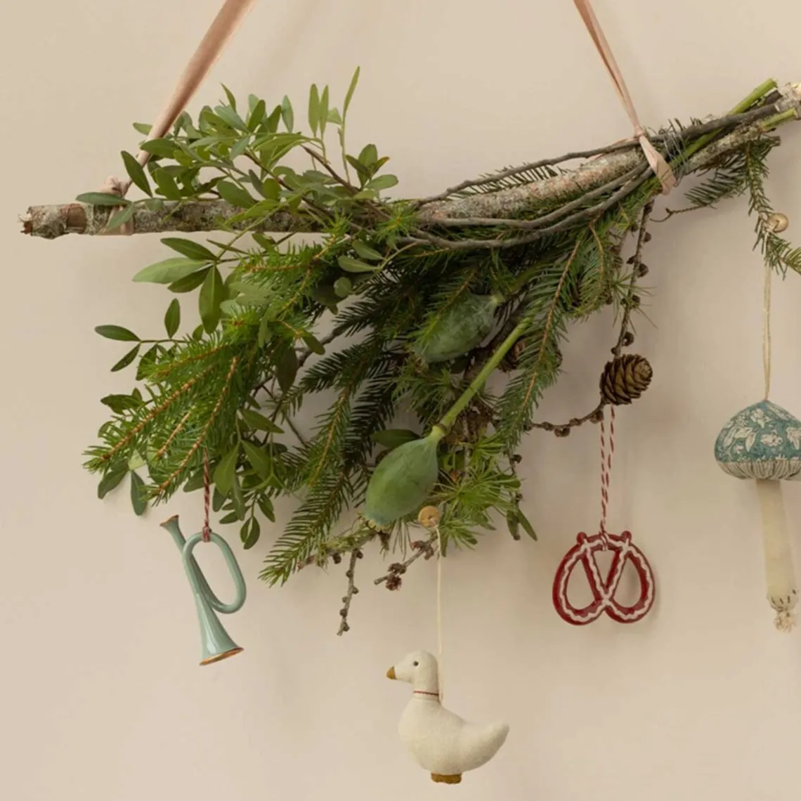 Pynt dit hjem og juletræ med disse elegante Maileg-ophæng, fremstillet i fine tekstiler med broderede detaljer, der giver et eksklusivt look. Kombiner flere forskellige ophæng for at skabe en unik og personlig samling. Mål:
