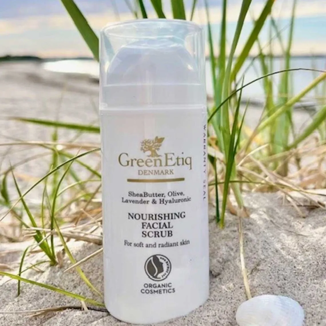 Fordel skrubben i ansigtet og på halsen på fugtet hud. Massér nu konsistensen godt ind i huden, i små cirkulære bevægelser, så de døde hudceller løsnes. Undgå altid øjenomgivelserne. Lad masken sidde 5-10 min., skyl herefter skrubben af med vand. Kan bruges ca. 1-2 gange ugentligt. Der kan med fordel afsluttes med GreenEtiq´s meget fugtgivende og plejende Face Tonic, uden alkohol.