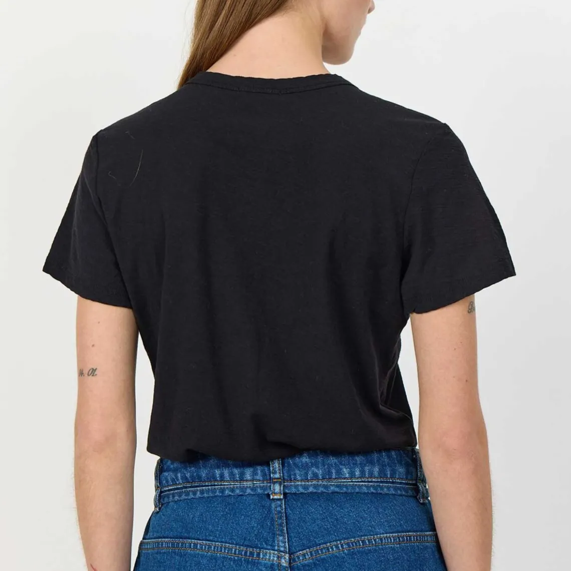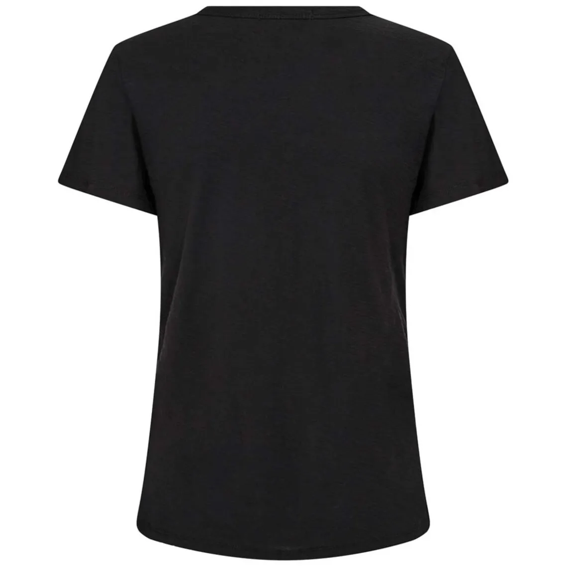 Denne klassiske t-shirt kombinerer enkelhed og femininitet med sin smigrende v-udskæring og korte ærmer. Det tidløse design gør den utrolig alsidig og let at style, uanset om du er på udkig efter et afslappet hverdagslook eller et stilrent basisplagg til dit outfit. En essentiel t-shirt, der nemt kan kombineres med det meste i din garderobe, og som hurtigt bliver et uundværligt must-have.