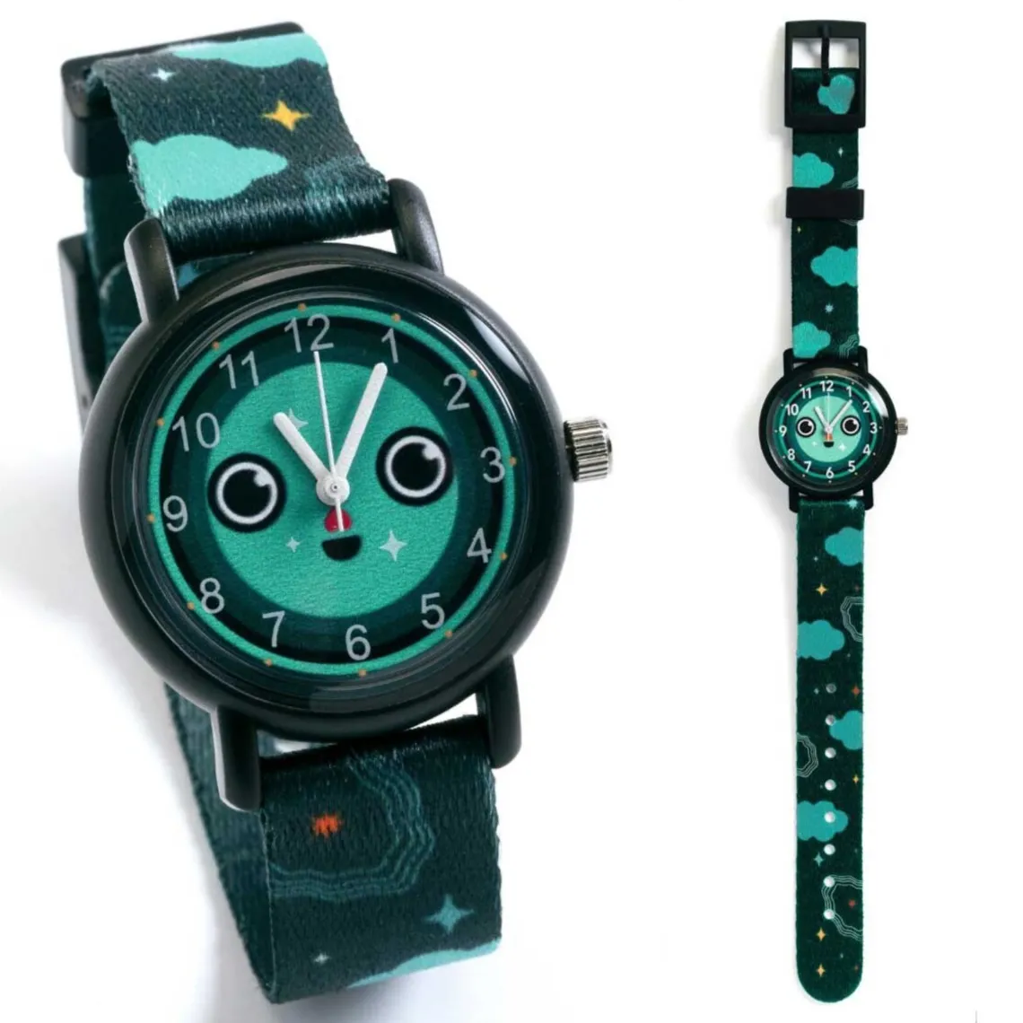 Uret “natten” har en glow in the dark effekt, som gør det spændende for børnene at se klokken.