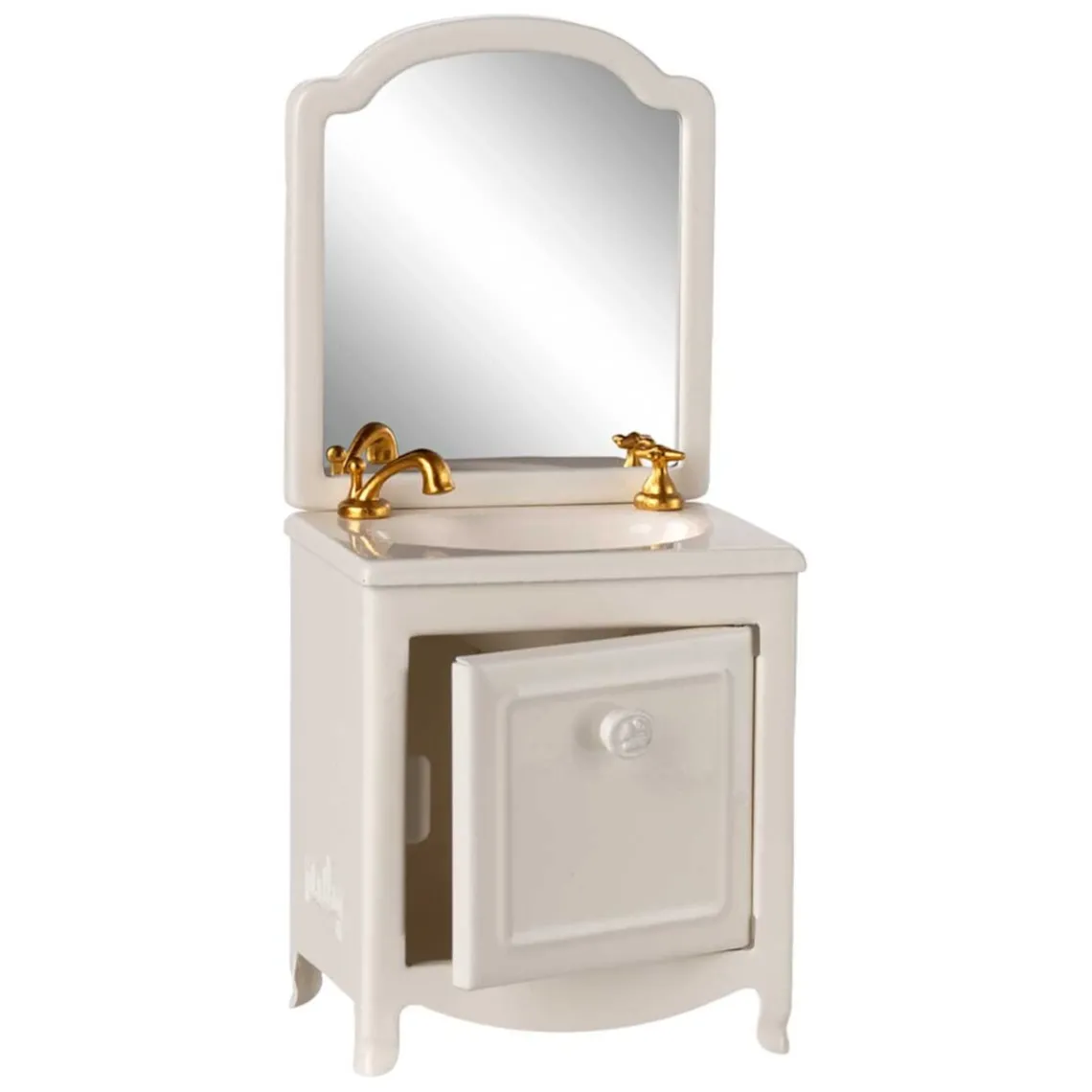Et uundværligt møbel til badeværelset i Mouse Hole Farmhouse. Det har et lille skab under vasken samt et spejl, og du kan udvide legen ved at tilføje Maileg-toilettet og badekarret. Mål: