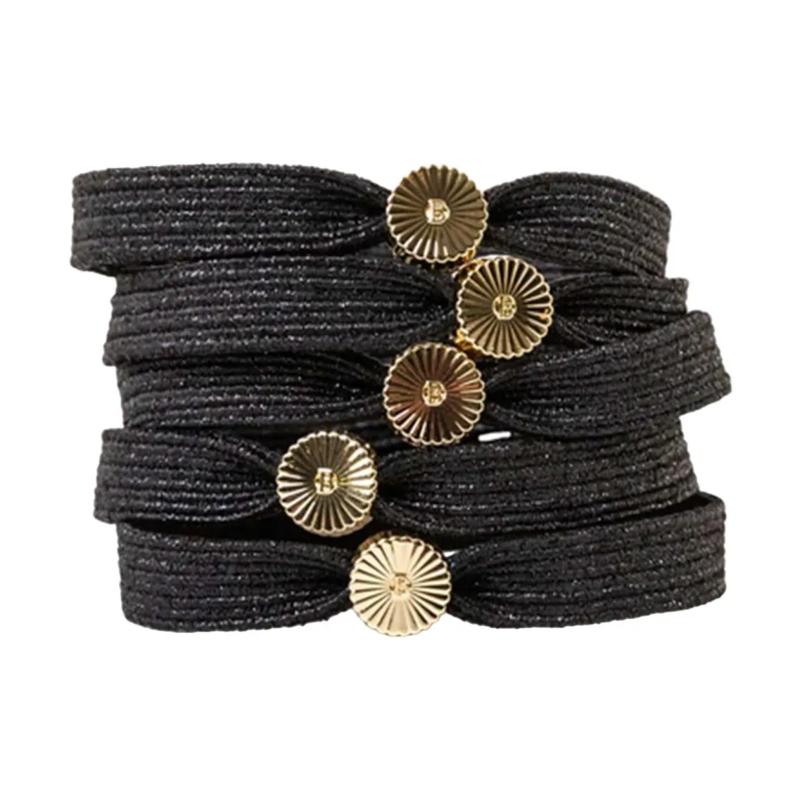 “Black Diamond”-elastikken er et symbol på klassisk raffinement. Den dybsorte farve kombineret med den elegante gyldne detalje giver et luksuriøst præg, der fuldender både et afslappet hverdagslook og en stilfuld aftenpåklædning. Brug den til at skabe et sofistikeret og dragende udtryk, der holder sig tidløst.