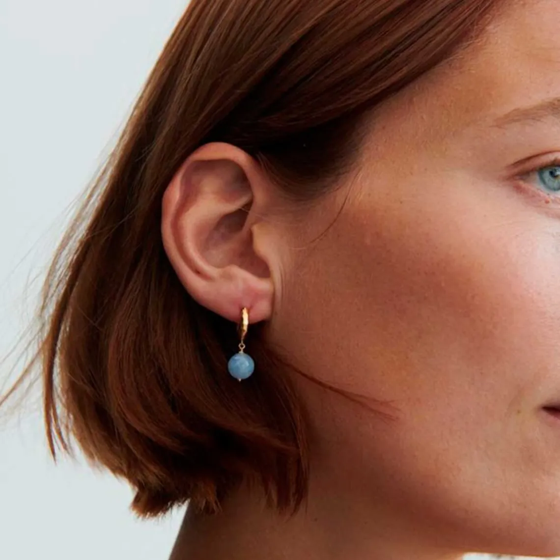 De fine Blue Sky Earrings har en smuk sten i en varm blå farve i enden, der får dig til at drømme om de lune sommeraftener.