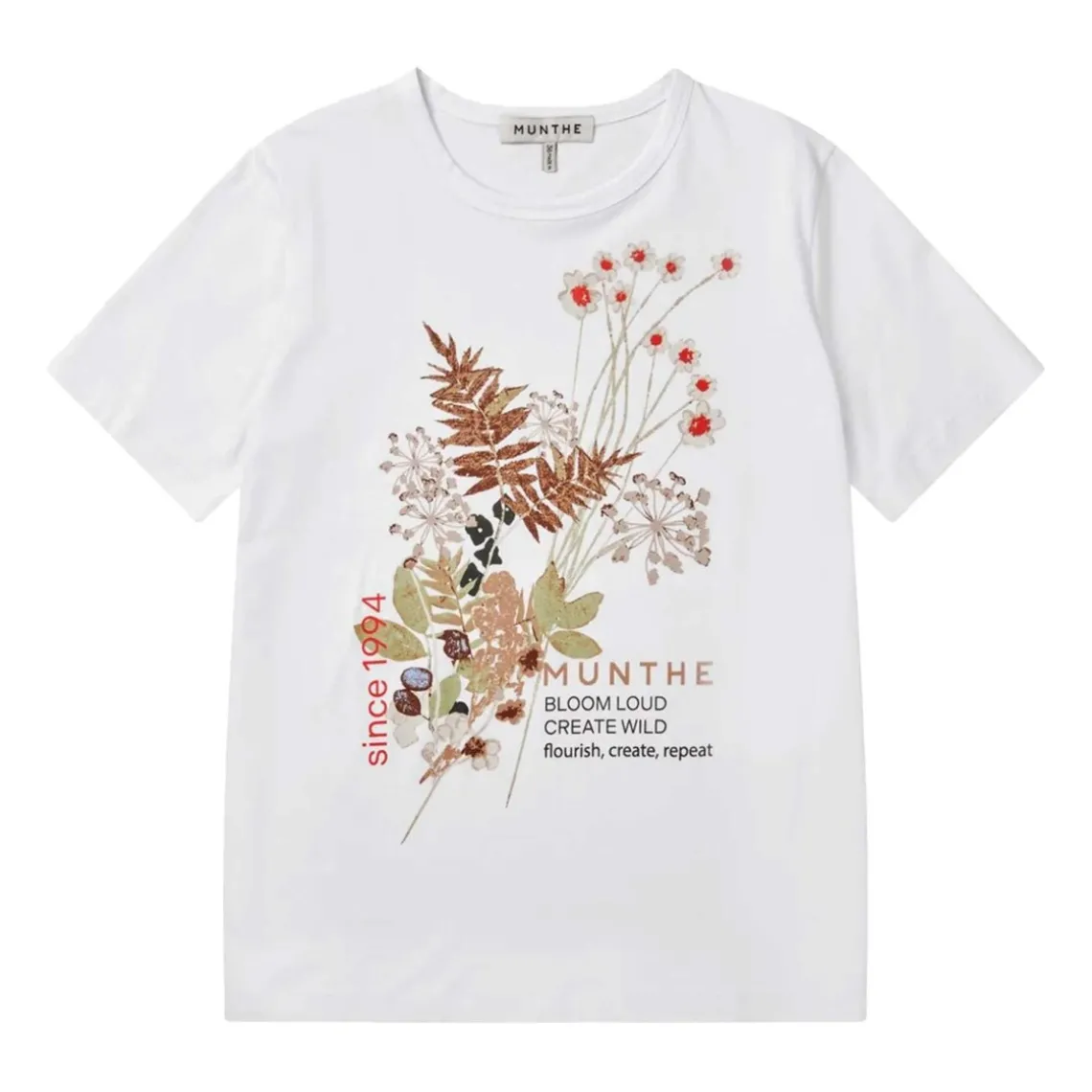 T-shirt med naturmotiv og tekst, designet med normal pasform, rund halsudskæring og korte ærmer. En afslappet og alsidig T-shirt, der er nem at style til både hverdag og fritid. Materiale: 100% økologisk bomuld