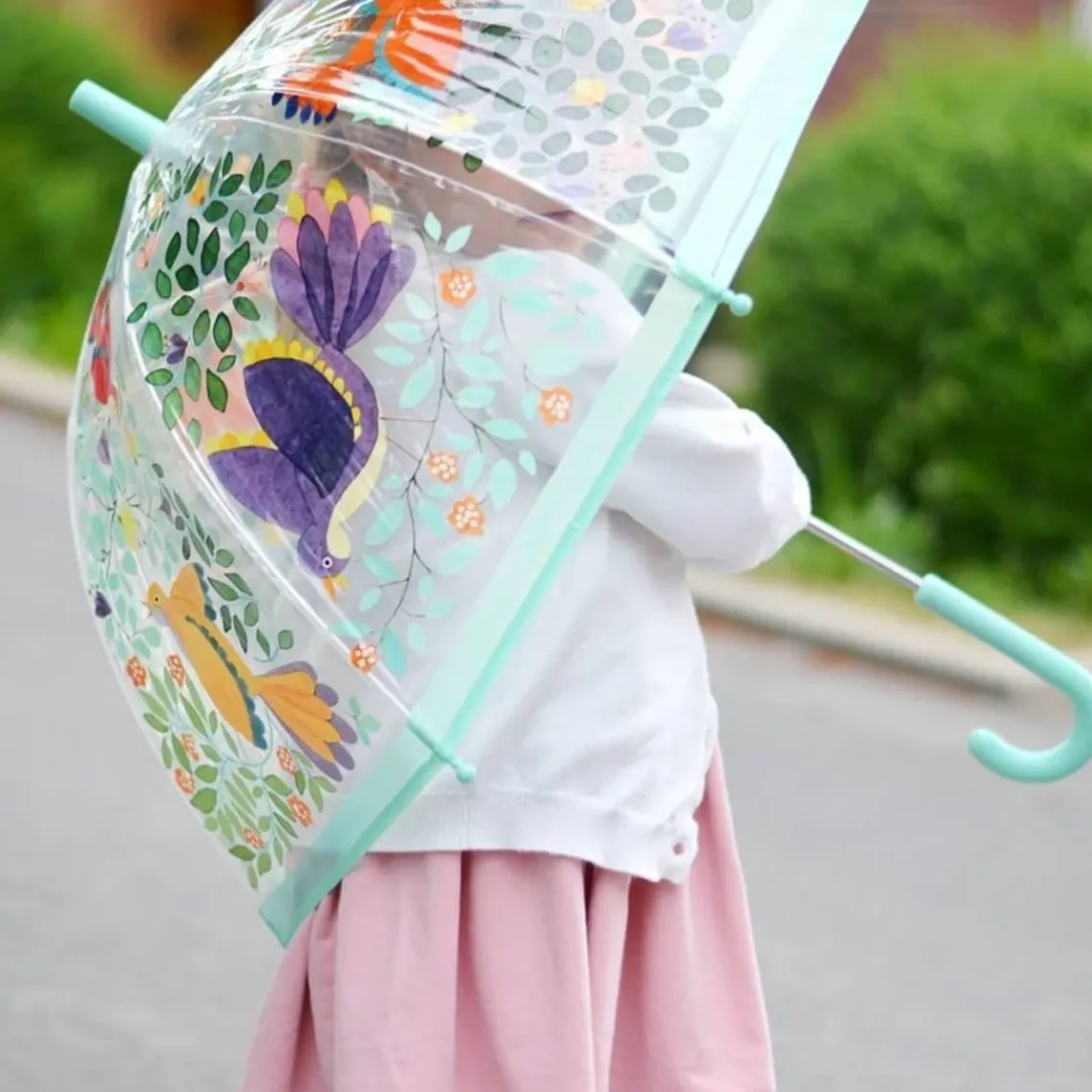 Gør regnvejrsdage sjovere med denne charmerende børneparaply dekoreret med et farverigt fugle tema. Flot og praktisk paraply til børn, gennemsigtig så man kan gå trygt i ly af regn men stadig se verden omkring sig. Designet specielt til børn, er paraplyen både let og nem at håndtere, hvilket gør den ideel til små hænder.