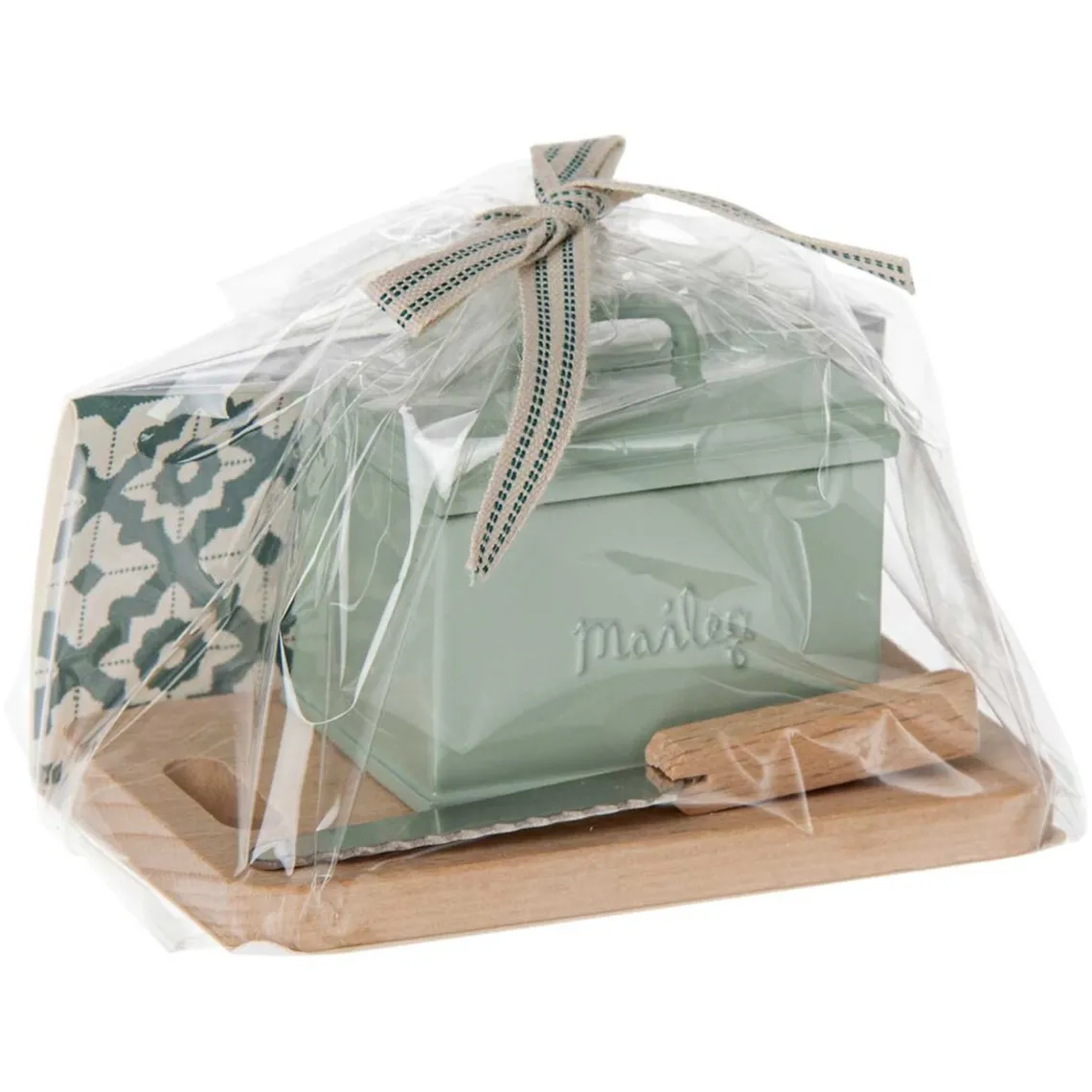 Brødkasse med brød og kniv fra Maileg. Dette sæt indeholder et skærebræt, et brød, en brødkniv og en brødkasse. Dette er et super sødt sæt. Det medfølgende brød ligner et franskbrød, med skiver af brødet. Dit barn vil kunne genkende tingene fra jeres eget morgenbord.