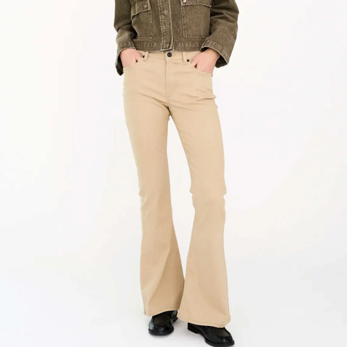 Charlotte Jeans kombinerer feminin silhuet med en afslappet, moderne kant. Med midt-talje og let flare fra hoften til hem giver de en flatterende pasform, der fremhæver former uden at gå på kompromis med komforten. Den subtile udvidelse ved benenden skaber et elongerende look og gør dem nemme at style til både hverdag og mere polerede outfits. Materiale: 71% bomuld, 25% polyester, 4% elastan