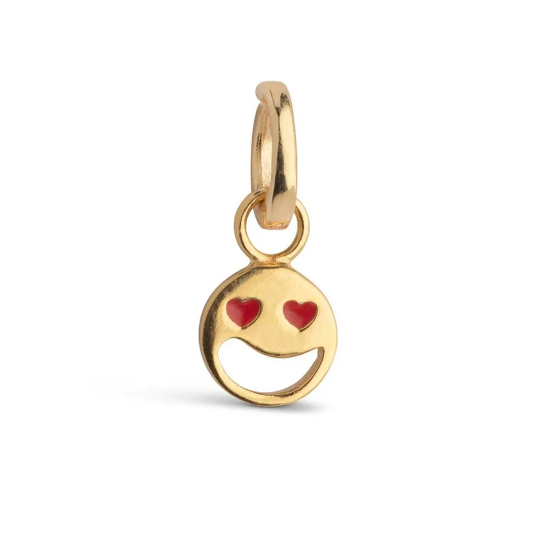 Lukkemekanismen på Funky Smiley charm kan tages af, og med det tilbageværende øsken, kan du sætte hjerte vedhænget på en stor del af Enamels hoops.