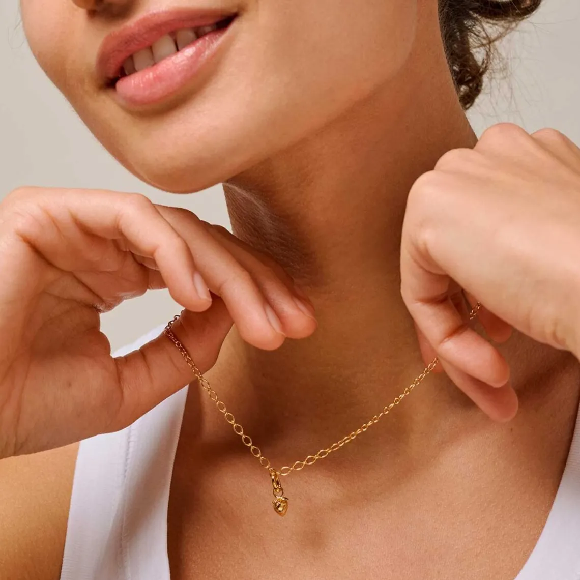 Lukkemekanismen på Sunny Strawberry charm kan tages af, og med det tilbageværende øsken, kan du sætte hjerte vedhænget på en stor del af Enamels hoops.