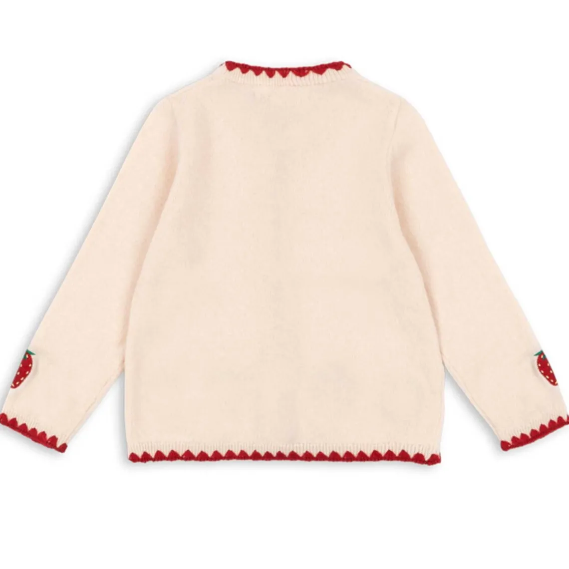 Collette er en ekstra blød strikcardigan med fine broderede jordbær, der giver et charmerende og feminint udtryk. De kontrastfarvede kanter langs afslutningerne tilføjer en elegant detalje, som fuldender designet. Cardiganen lukkes foran med smukke perlemorsknapper og er perfekt til både hverdag og særlige lejligheder, hvor komfort og stil går hånd i hånd. Materiale: 100% uld