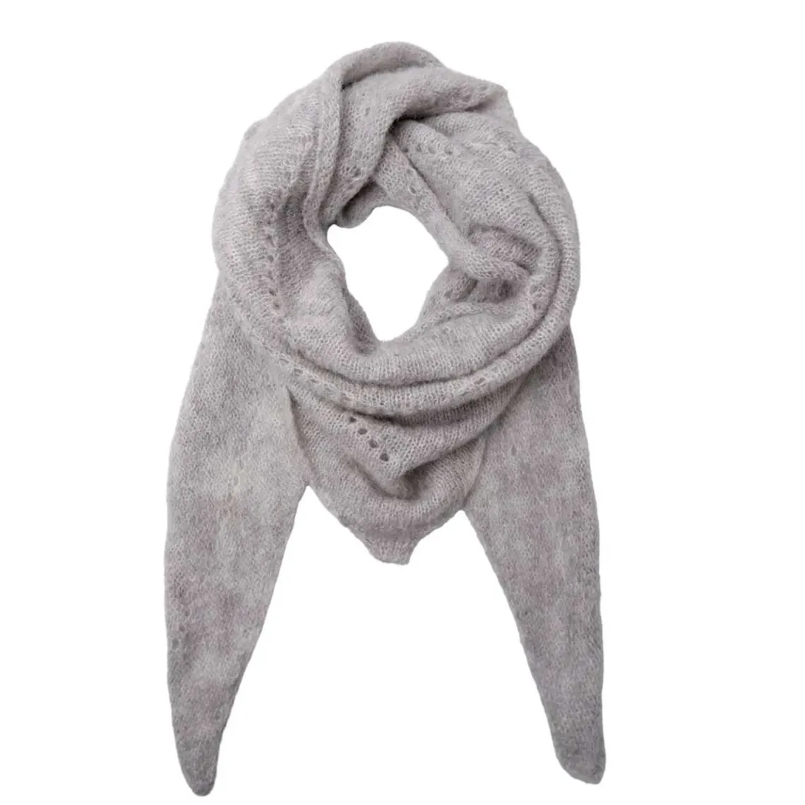Dell strikket mini tørklæde fra Black Colour. Her får du et fint lille trekantet tørklæde, som kommer med det fineste hulmønster. Dette tørklæde er dejligt blødt, og behageligt at have på.