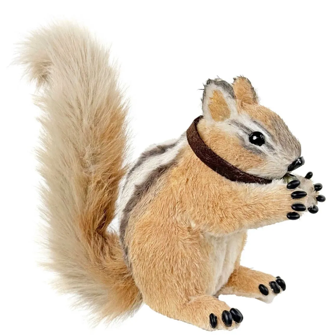 Dekorativ egernfigur med klokke, perfekt til juledekoration eller som pynt i hjemmet. Figuren tilføjer et festligt og hyggeligt element til indretningen. Specifikationer: